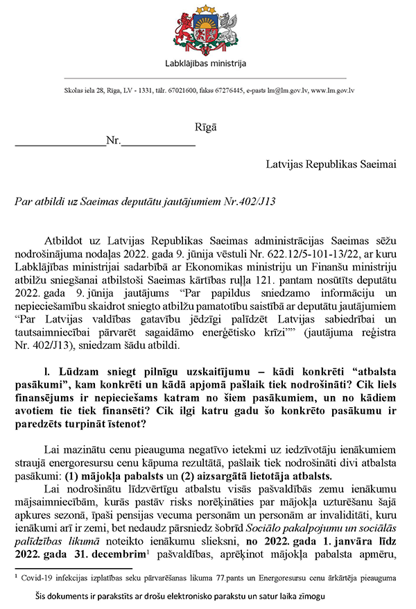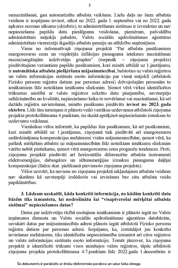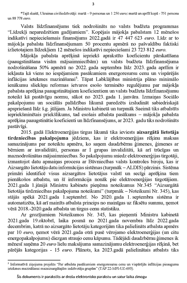 29 Nepieciešamais finansējums tika rēķināts, kad vēl nebija zināmi citu nozaru atbalsta pasākumi, kas rezultātā ietekmēja iedzīvotāju izdevumus, tāpēc piešķirtais finansējums indikatīvi būs pietiekams.