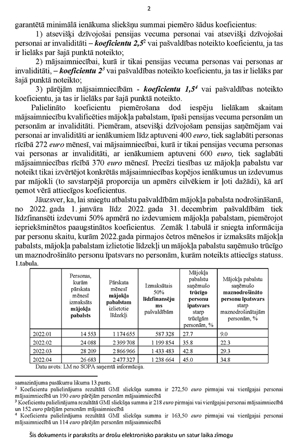 24 Koeficienta palielinājuma rezultātā GMI slieksnis mājokļa pabalsta apmēra aprēķinam ir 436 euro pirmajai vai vienīgajai personai mājsaimniecībā un 304 euro pārējām personām mājsaimniecībā.