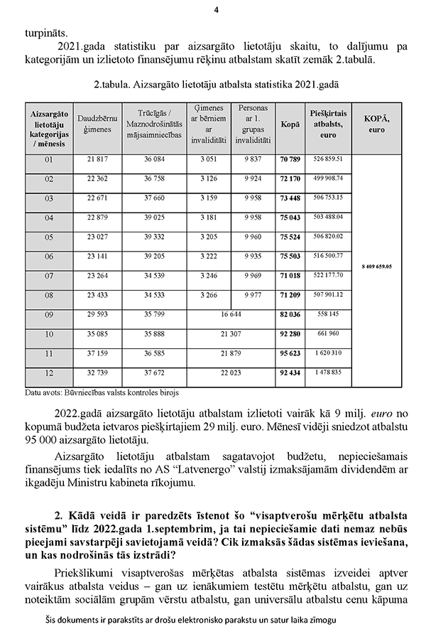| 4. | Energoresursu izdevumu kompensēšana mājsaimniecību rēķinos | ||