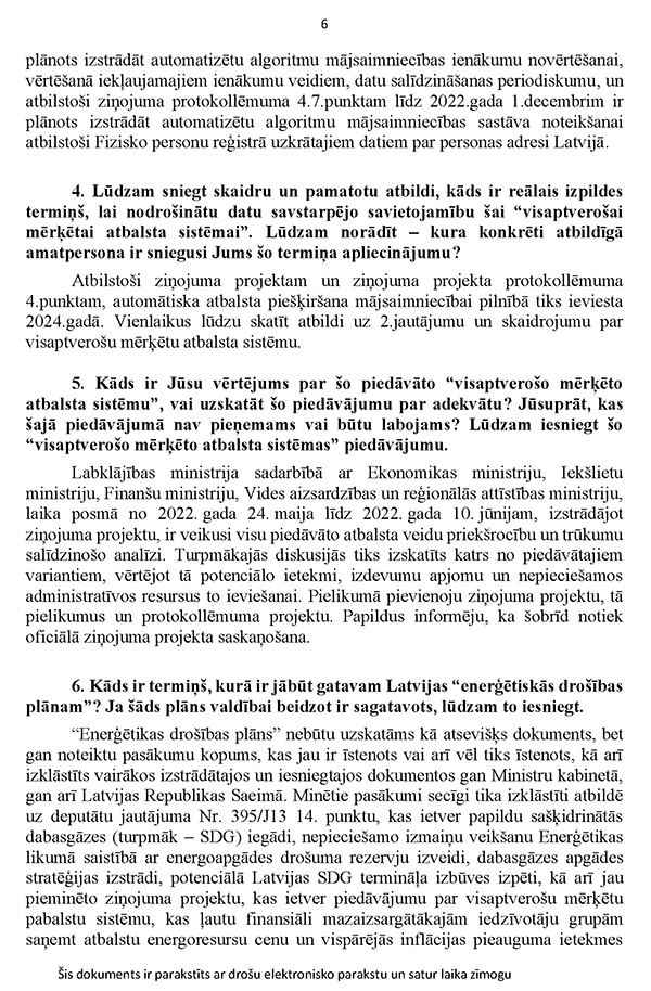 | 6. | Atbalsts mājsaimniecībām līdz noteiktam ienākumu slieksnim | Aprēķins nav veikts, nepieciešamas diskusijas | |