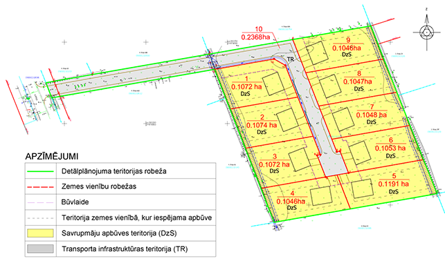 Detālplānojuma teritorijā ir plānots veidot 9 (deviņas) jaunas zemes vienības savrupmāju vai rindu māju apbūvei ar piekļuvi pa jaunveidojamu koplietošanas ceļu no 4. līnijas.