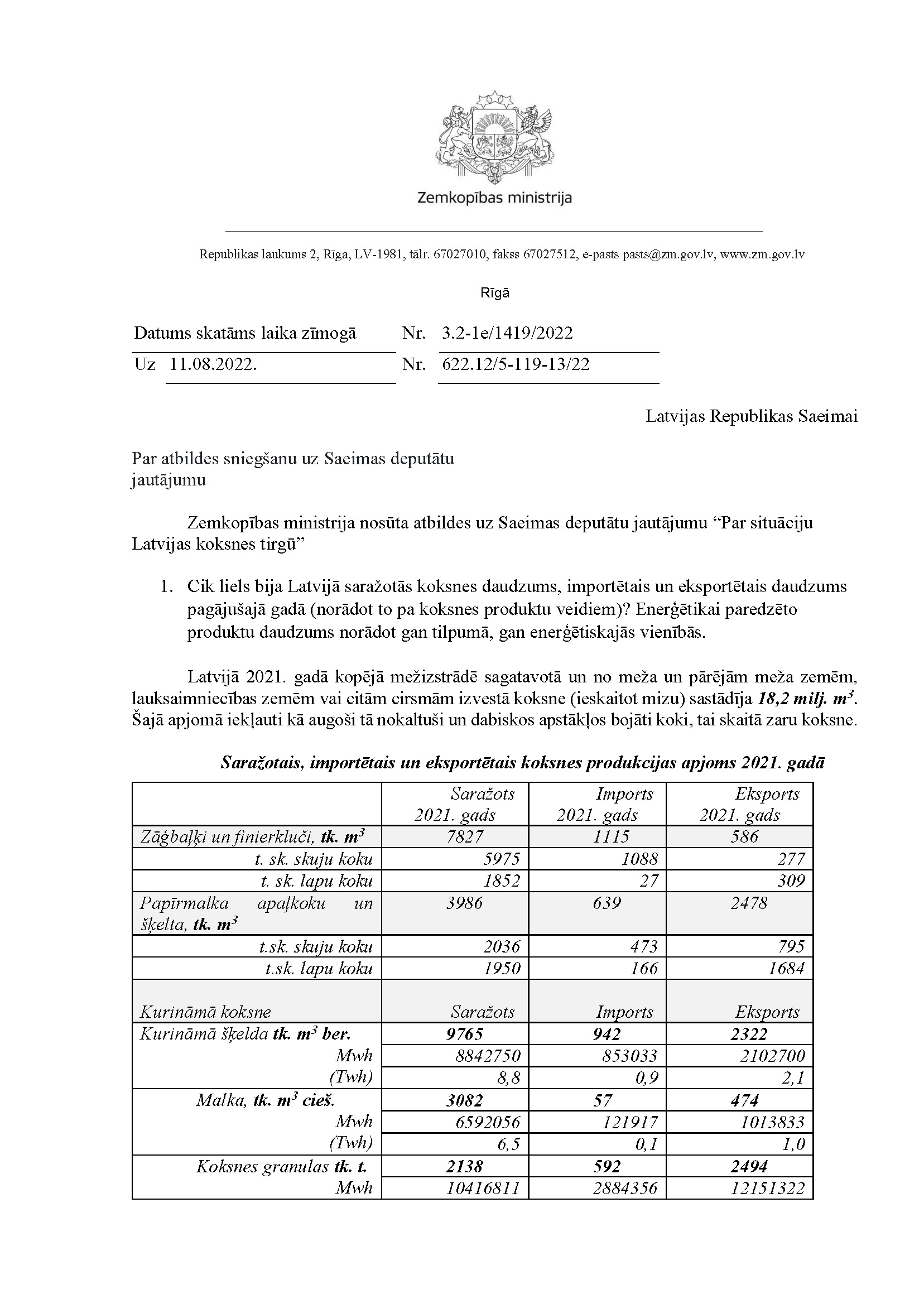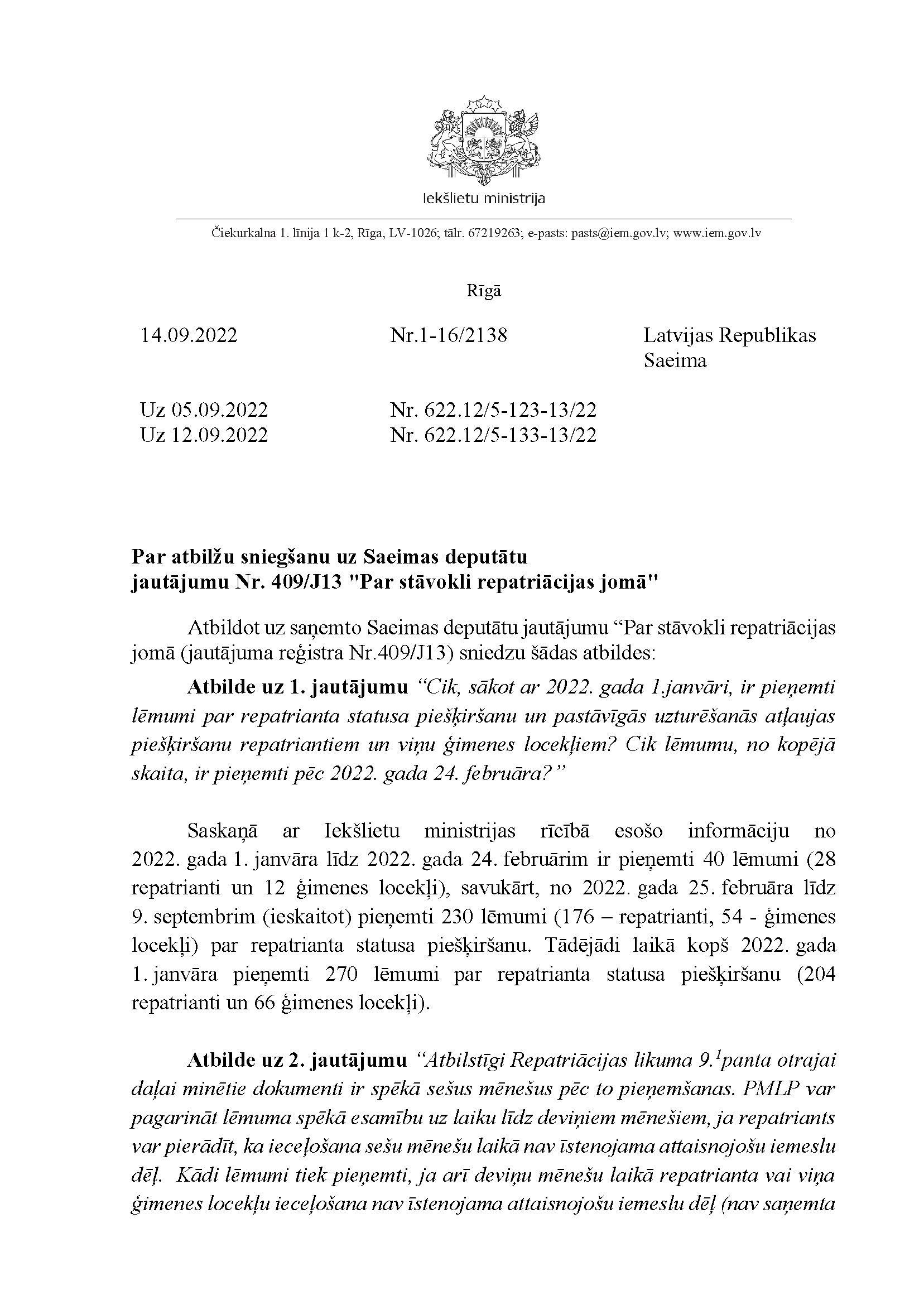 Rakstveidā sniegtās atbildes uz deputātu jautājumiem