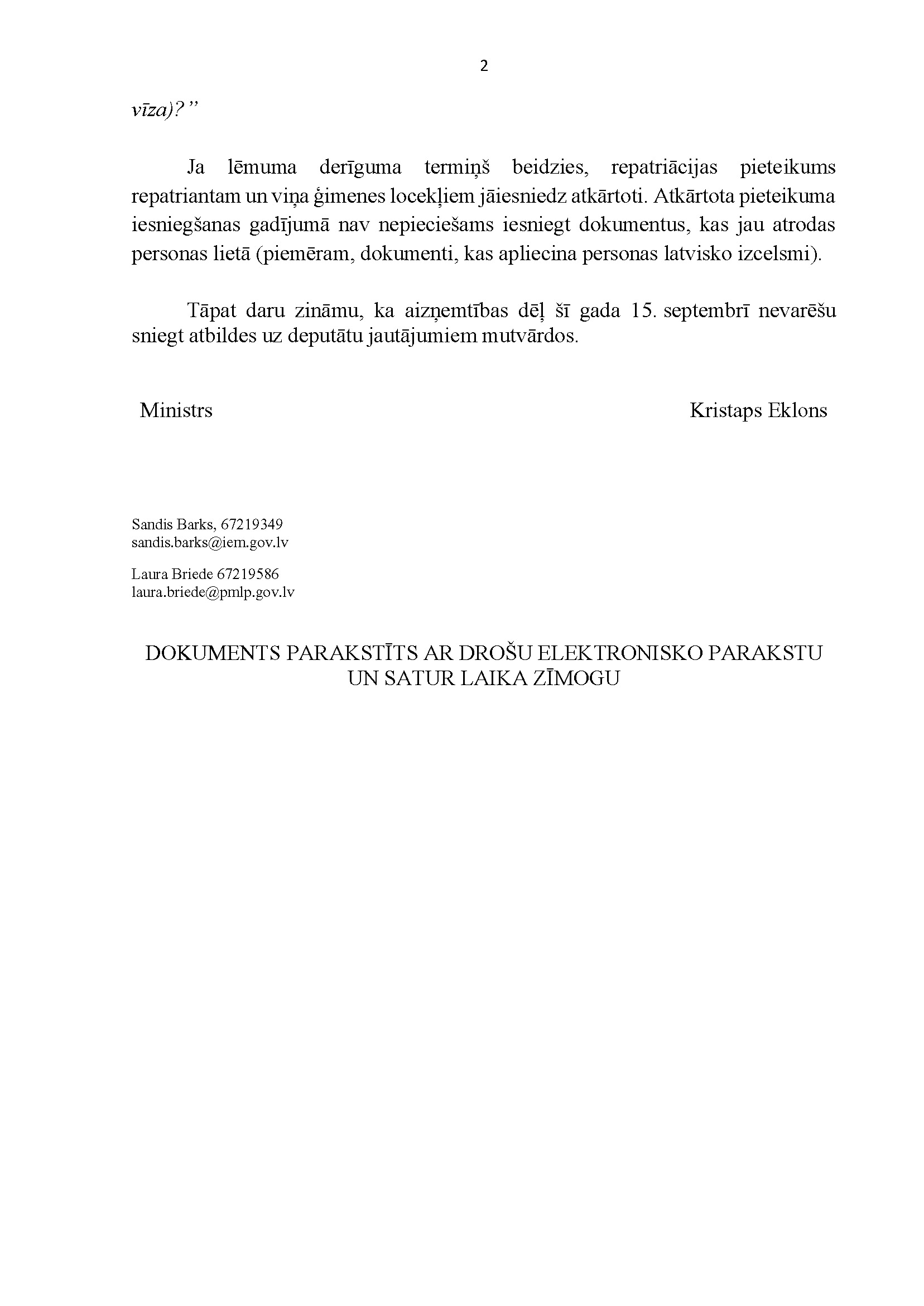 Tātad, kolēģi, pēc divām minūtēm turpināsim darbu ar 15. septembra sēdes darba kārtību.