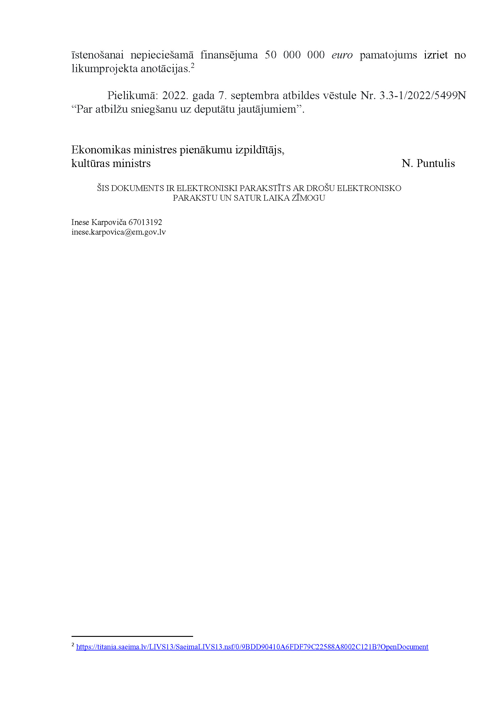 Deputātu Viktora Valaiņa, Janīnas Jalinskas, Jāņa Dūklava, Jāņa Vucāna, Armanda Krauzes, Ulda Auguļa, Romāna Naudiņa, Gundara Daudzes, Ramonas Petravičas, Karinas Sprūdes pieprasījums Ministru prezidentam Arturam Krišjānim Kariņam "Par valdības vilcināšanos briestošas energokrīzes apstākļos".