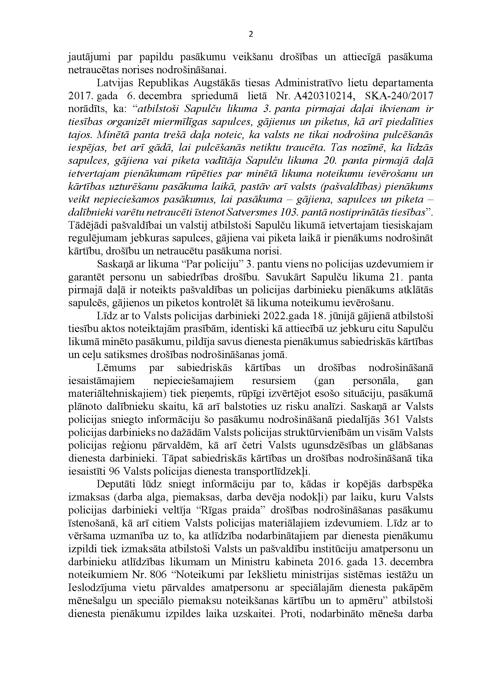 Izvērtējot sniegtās atbildes komisijas sēdes laikā un balsojot vienam "par", septiņiem – "pret" un vienam deputātam atturoties, komisija ir atzinusi, ka šis deputātu pieprasījums ir noraidāms.