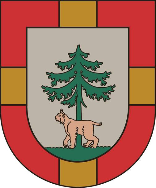 Jēkabpils novada ģerbonis (Sudraba laukā zaļā egle uz tādas pašas pamatnes, priekšā ejošs lūsis dabiskās krāsās. Sarkana ar zelta krustu dalīta apmale.) – reģistrēts 2022. gada 11. oktobrī.