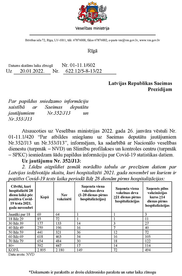 Deputāti Stepaņenko, Sprūde, Možvillo, Švecova un Petraviča iesnieguši jautājumu "Par monoklonālo antivielu iepirkumiem, Covid-19 vakcīnu ziedošanu un testēšanas kapacitāti", ko nododam veselības ministram.