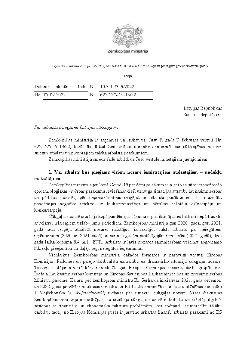 Ļoti cienījamie kolēģi! Latvijas iedzīvotāji! Latvijas valstij šodien jābūt vienotai kā nekad. Zaļo un Zemnieku savienība aicina katru valsts iedzīvotāju apzināties, ka tautas vienota attieksme, nosodot Krievijas politisko, militāro agresiju pret Ukrainas valstiskumu, šobrīd ir izšķiroša. Mums – ikvienam Latvijas valsts iedzīvotājam – ir svarīgi: miers, spēja reāli un skarbi novērtēt Krievijas agresora uzbrukumu sekas Ukrainas valstiskumam, teritoriālajai integritātei un neatkarībai.