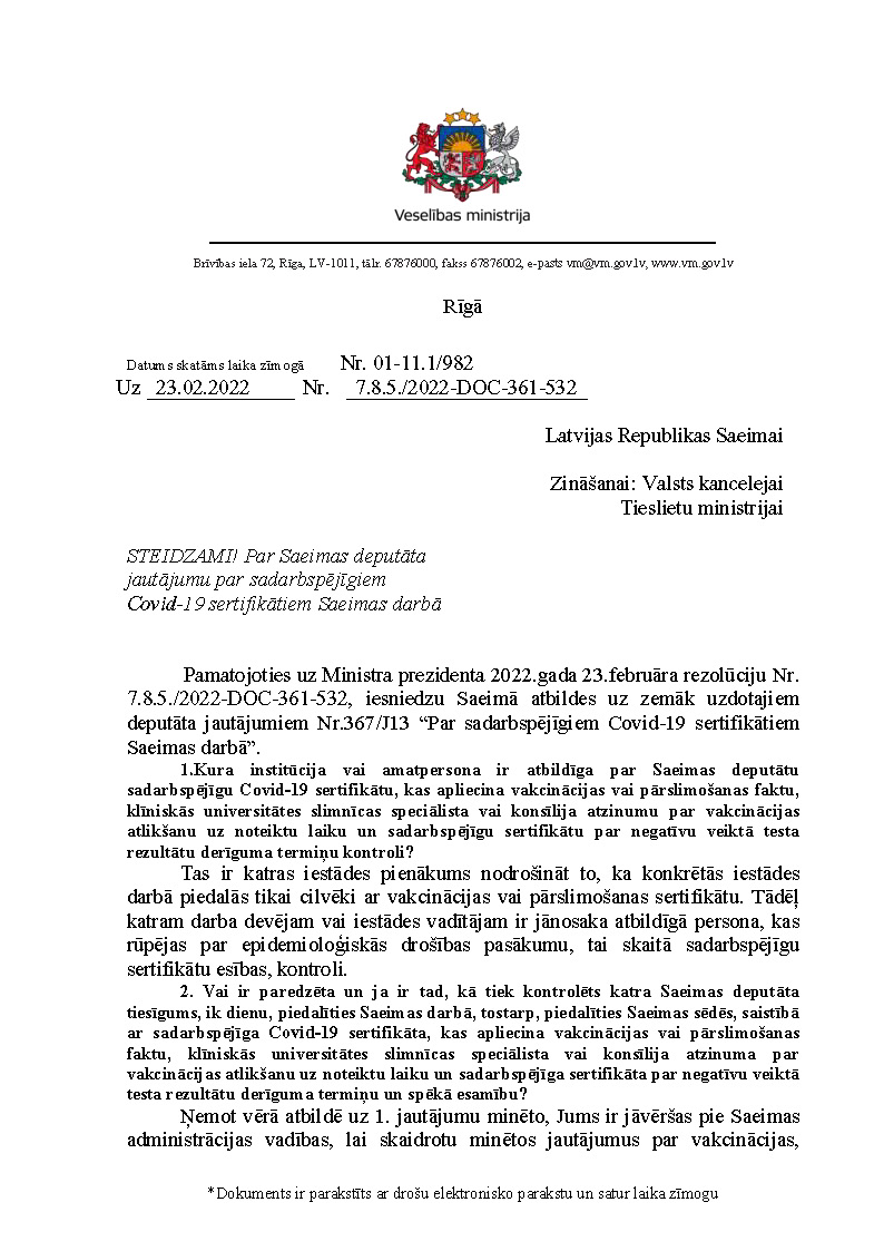 Sēdes vadītāja. Cienījamās deputātes! Godātie deputāti! Sākam Latvijas Republikas Saeimas 2022. gada 24. februāra otrās attālinātās ārkārtas sēdes darba kārtības izskatīšanu.