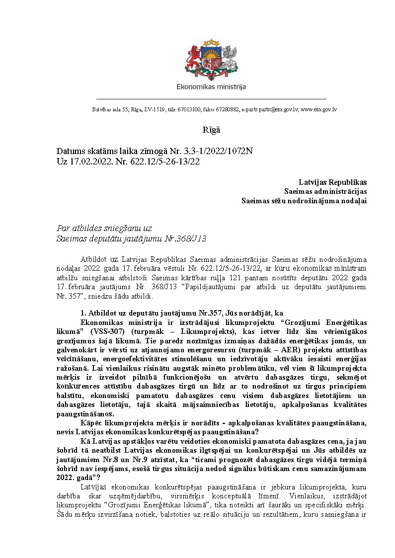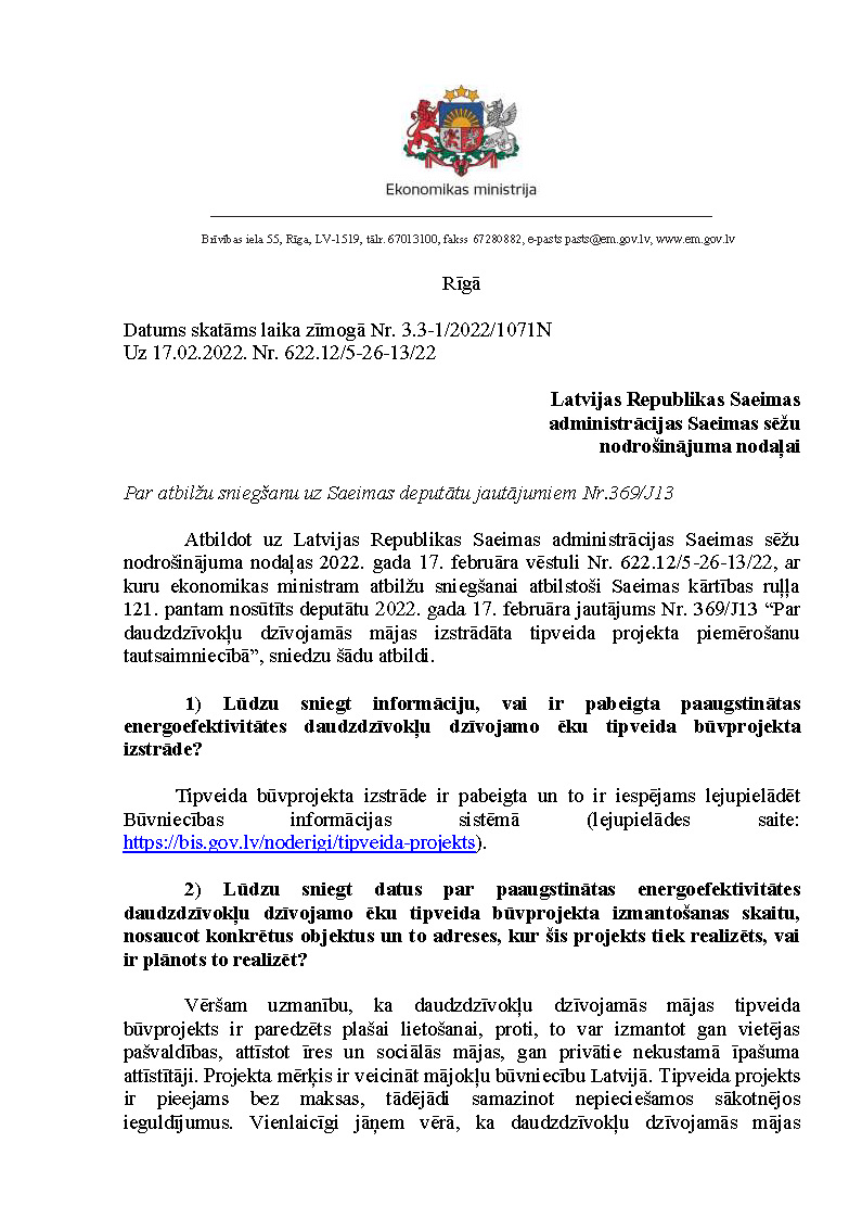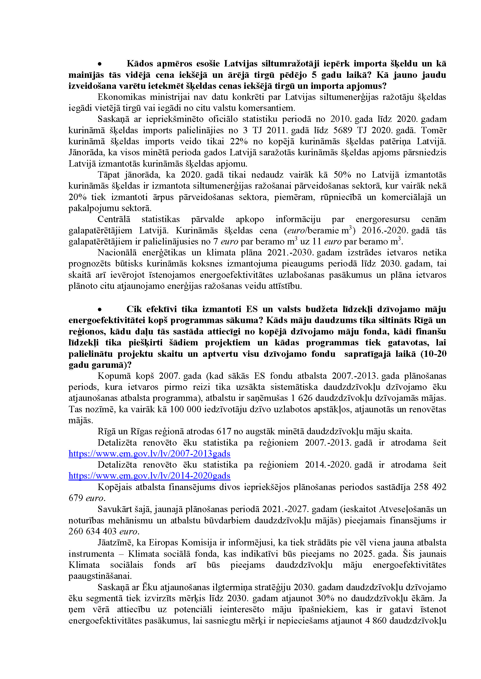 Rakstveidā sniegtās atbildes uz deputātu jautājumiem