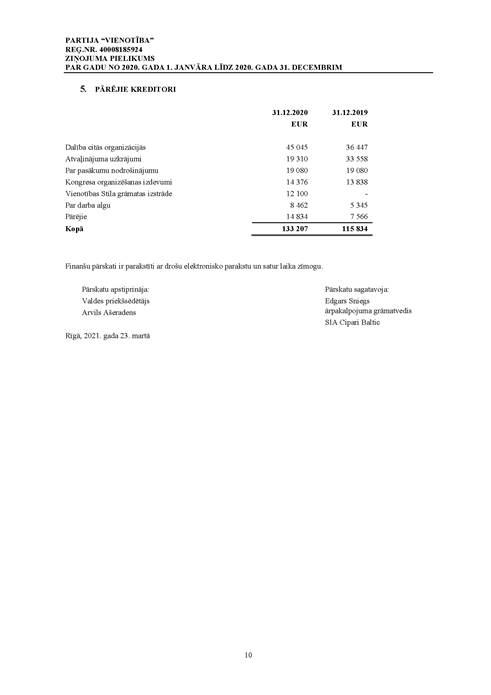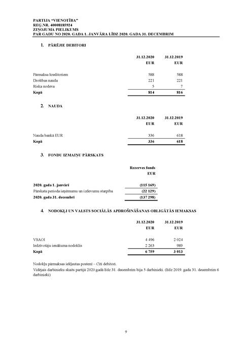 Politisko partiju apvienības "Jaunā VIENOTĪBA", reģ. Nr. 40008158358, precizēts 2021.gada pārskats, euro