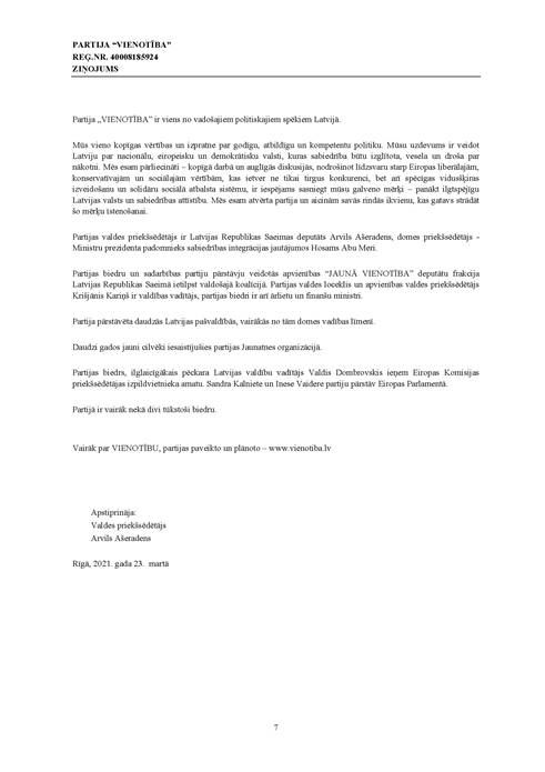 Partijas nosaukums: Jaunā VIENOTĪBA (Nacionālās VIENOTĪBAS apvienība; Partijas Jaunais laiks, partijas Pilsoniskā savienība un partijas Sabiedrība Citai Politikai apvienība; VIENOTĪBA)