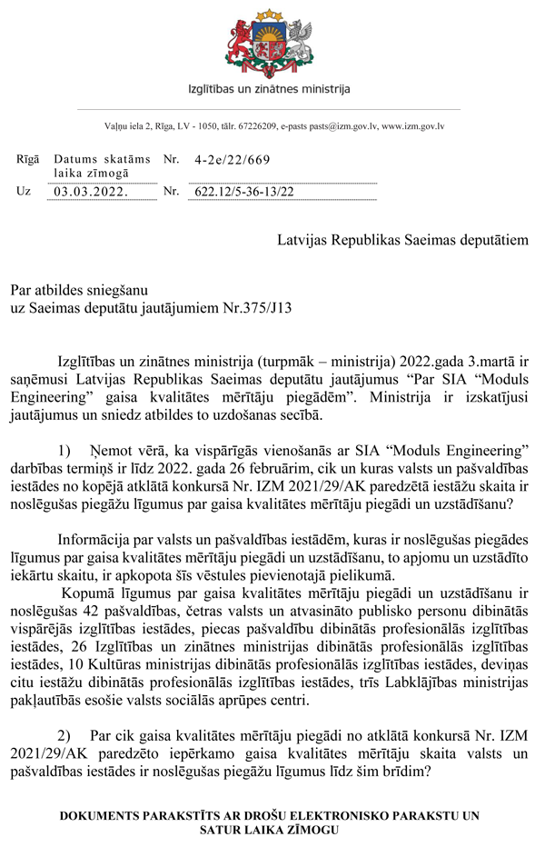 Cienījamā Saeimas priekšsēdētāja! Godātie kolēģi! Šis lēmuma projekts būtu iekļaujams darba kārtībā un izskatāms, jo tas paredz nekavējoties noteikt sejas masku lietošanu skolēniem pamata un vidējās izglītības iestādēs kā brīvprātīgu.