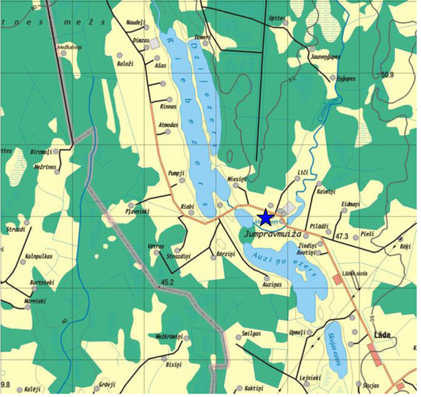 31. Auziņezera karte ar norādītām laivu nomas un licenču izplatīšanas vietām (pielikums Nr. 1);
