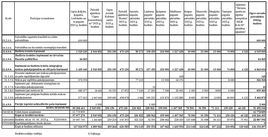 noteikumos Nr. 1/2023 "Par Ogres novada pašvaldības 2023. gada konsolidēto