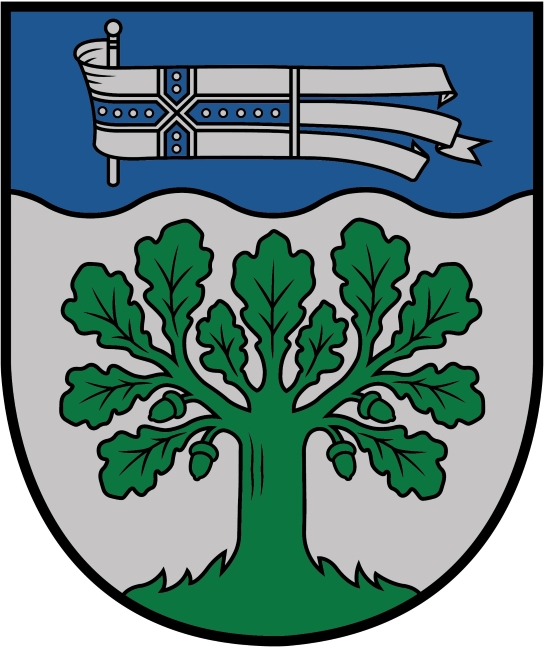Augšdaugavas novada ģerbonis (Dalīts galvā ar viļņotu griezumu: zils un sudrabs. Augšējā laukā plīvojošs sudraba karogs ar trīsdaļīgi šķeltiem galiem, apakšējā – no zāļaina pakalna izaugošs tāds pats ozols.) – reģistrēts 2023. gada 7. februārī.