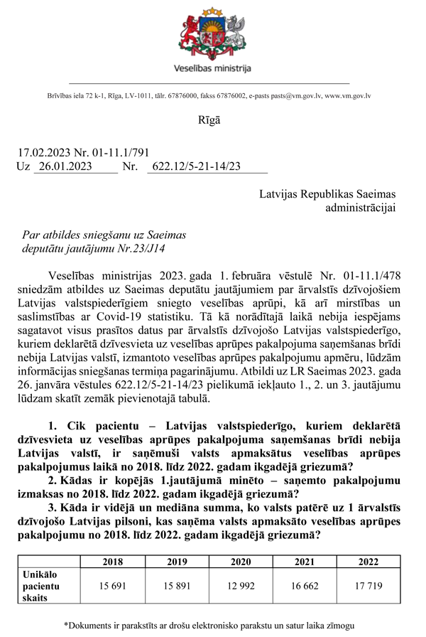 Uz šo jautājumu ir saņemta rakstveida atbilde, taču jautājuma uzdevēji nav apmierināti ar sniegto atbildi un vēlas saņemt papildu paskaidrojumus un uzdot papildu jautājumus.