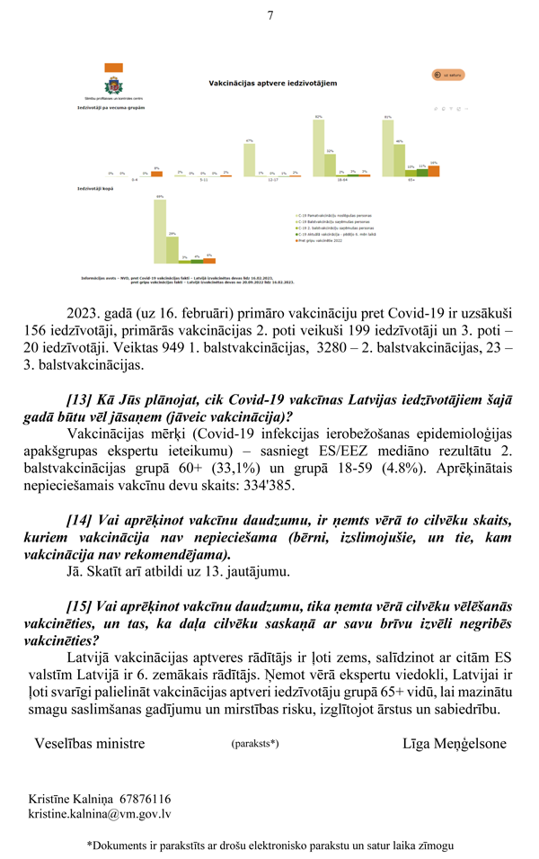 Es redzu, ka ministra kungs vēlas sniegt informāciju papildus jau sniegtajai rakstiskajai atbildei.