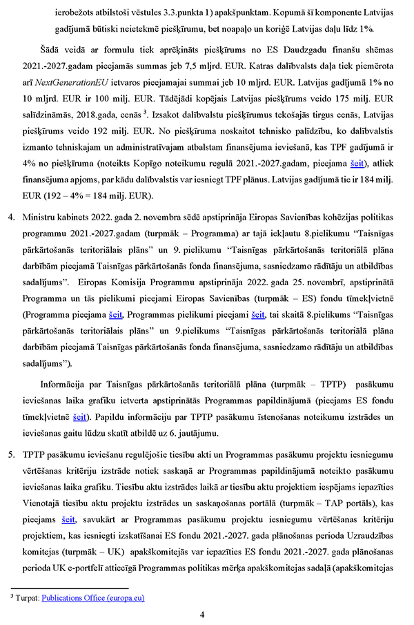 Kolēģi! Informēju, ka deputāti Armands Krauze, Andris Bērziņš, Edmunds Zivtiņš, Mārcis Jencītis un Ainārs Šlesers ir iesnieguši Ministru prezidentam Arturam Krišjānim Kariņam jautājumu "Par Latvijas uzņemtajām saistībām un paredzētajiem pasākumiem Taisnīgas pārkārtošanās fonda finansējuma sakarā". Jautājums tiek nosūtīts Ministru prezidentam Arturam Krišjānim Kariņam atbildes sniegšanai.