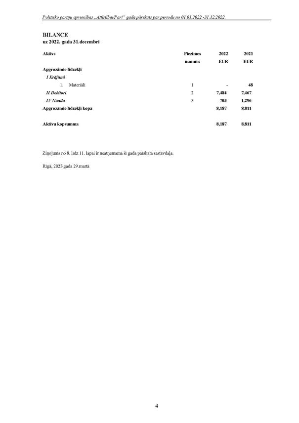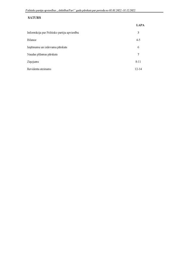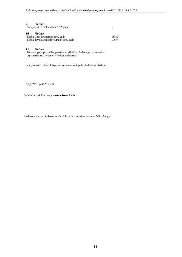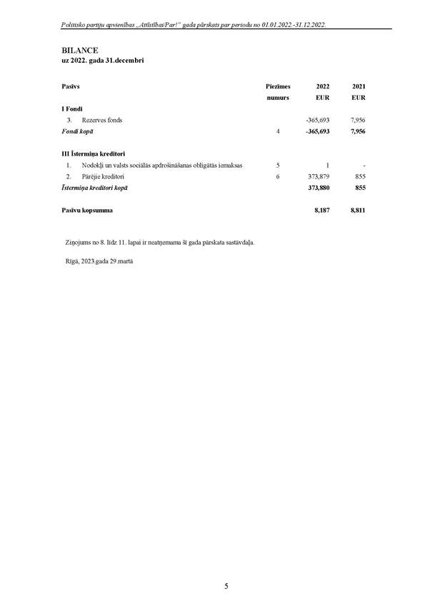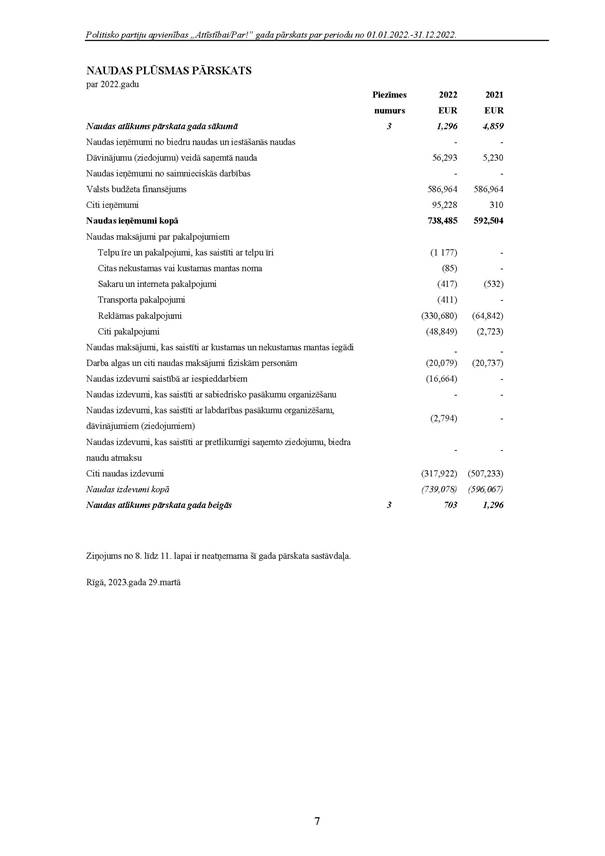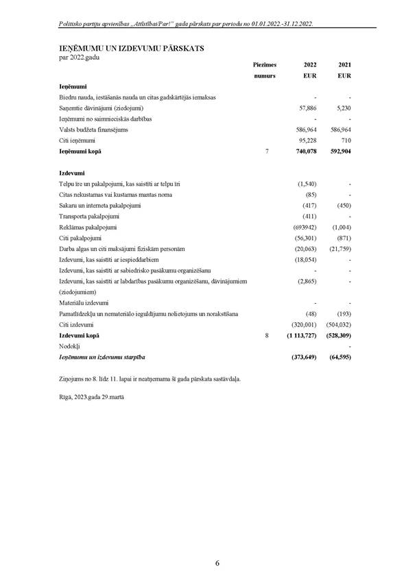 Politiskās partijas "Attīstībai/Par!", reģ. Nr. 40008275931, 2022.gada pārskats