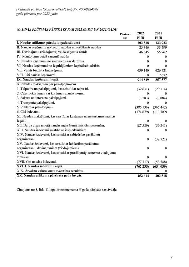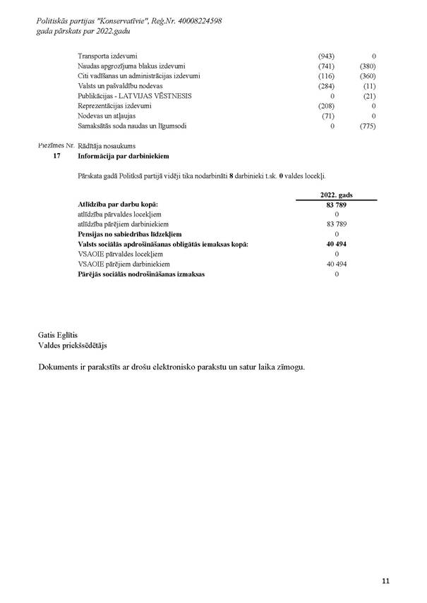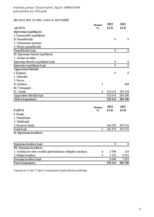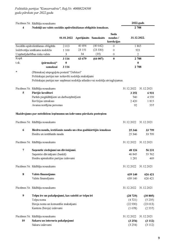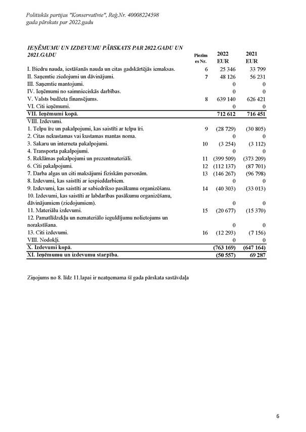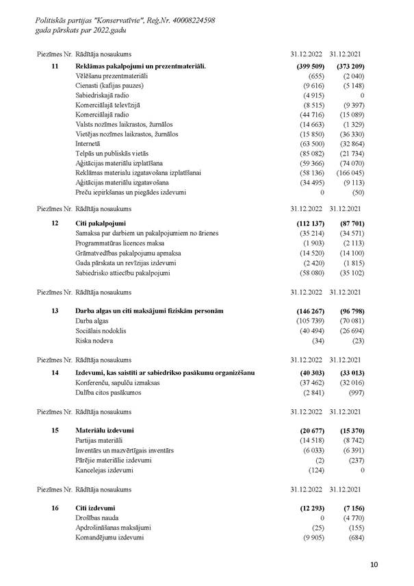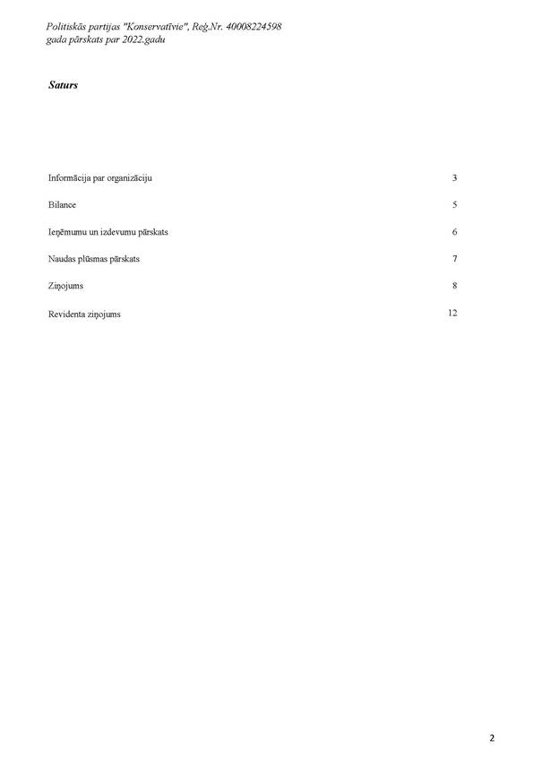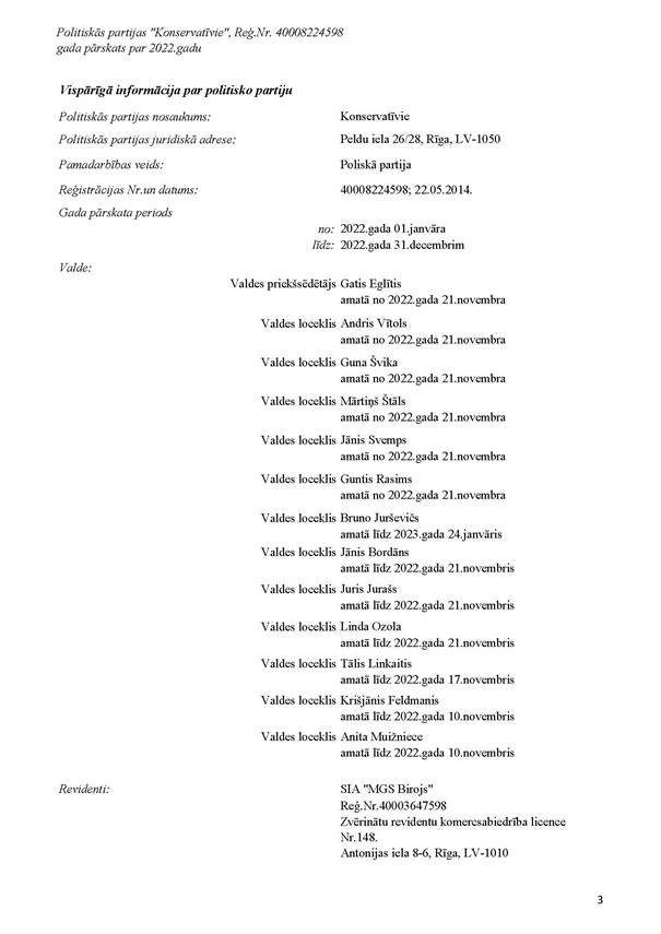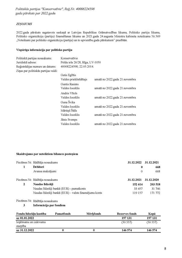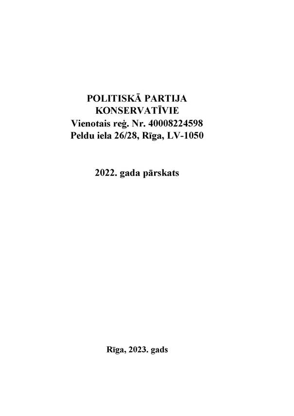 Politiskās partijas "Konservatīvie (Jaunā konservatīvā partija)", reģ. Nr. 40008224598, 2022.gada pārskats