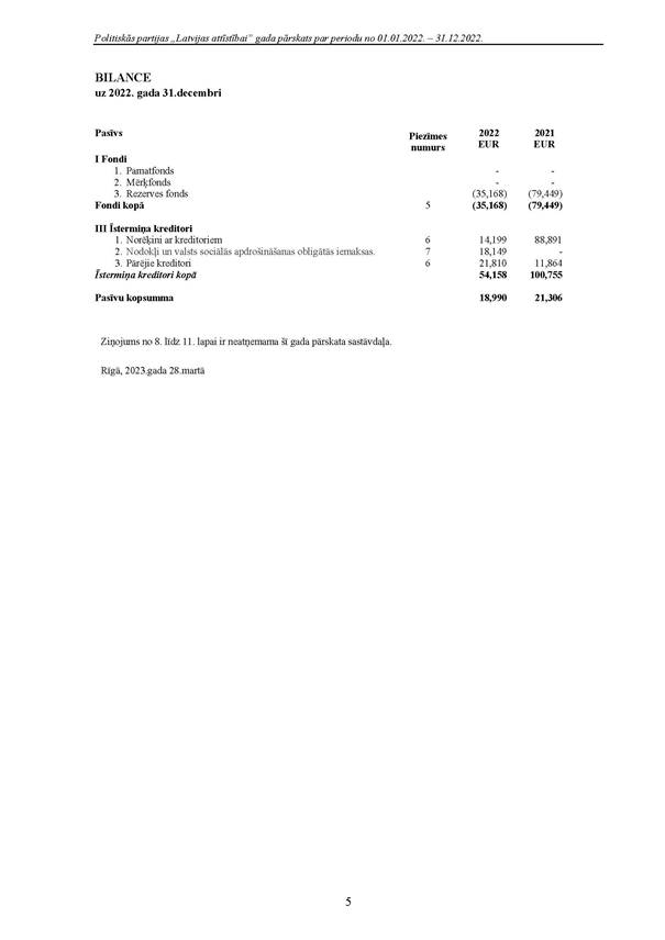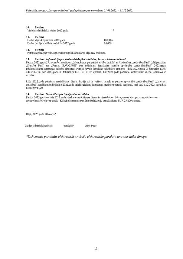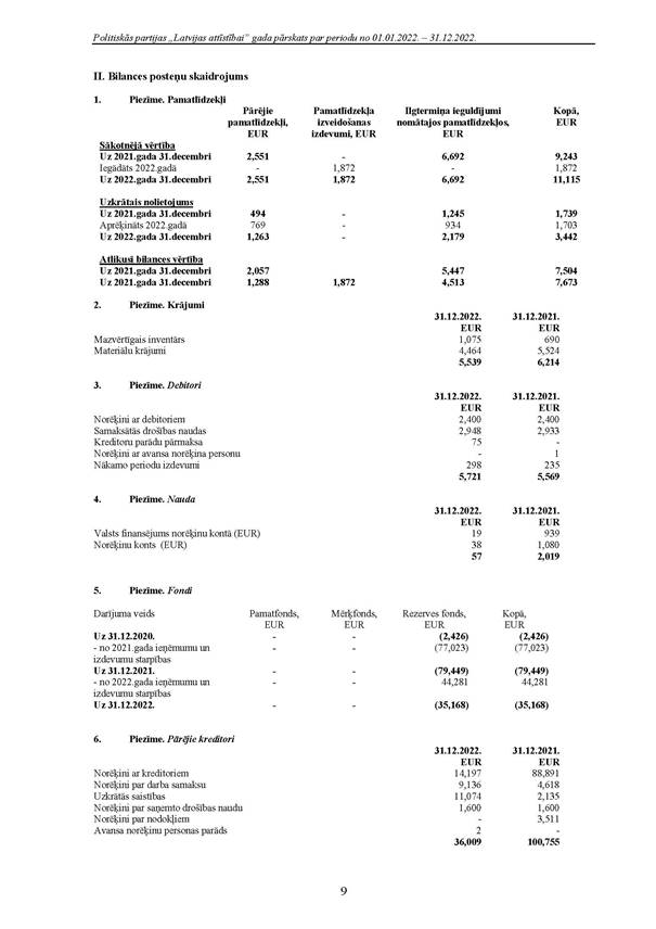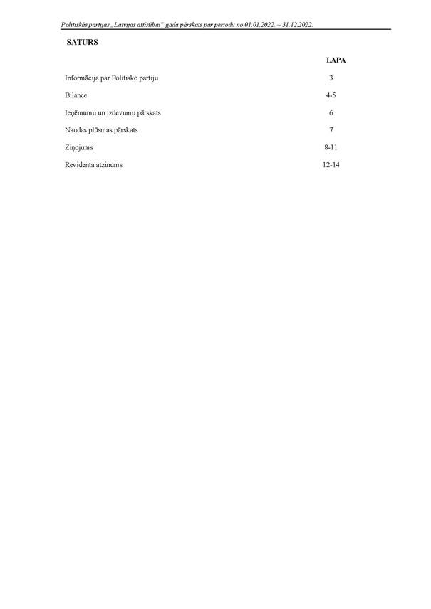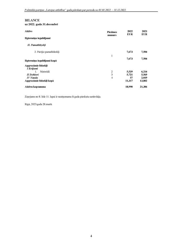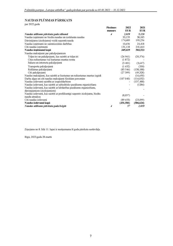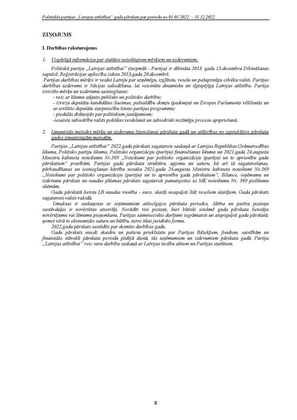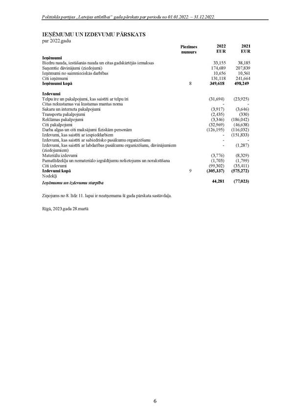 Politiskās partijas "Latvijas attīstībai", reģ. Nr. 40008218695, 2022.gada pārskats