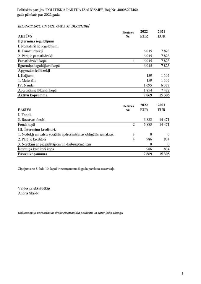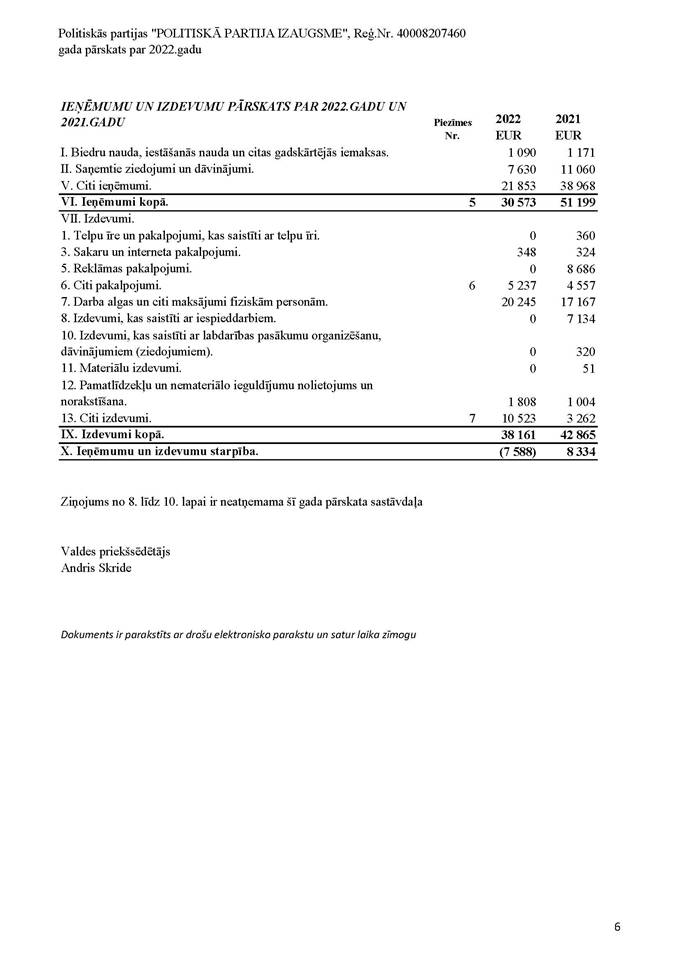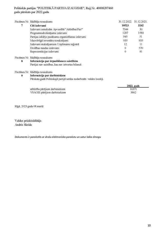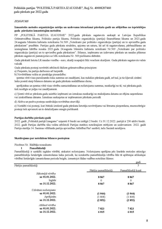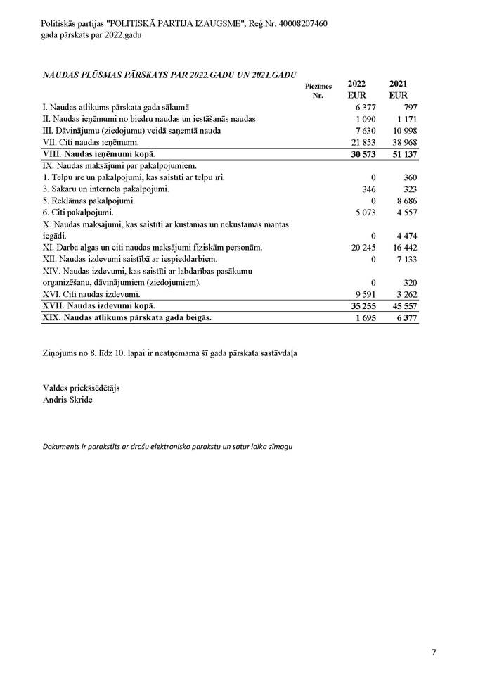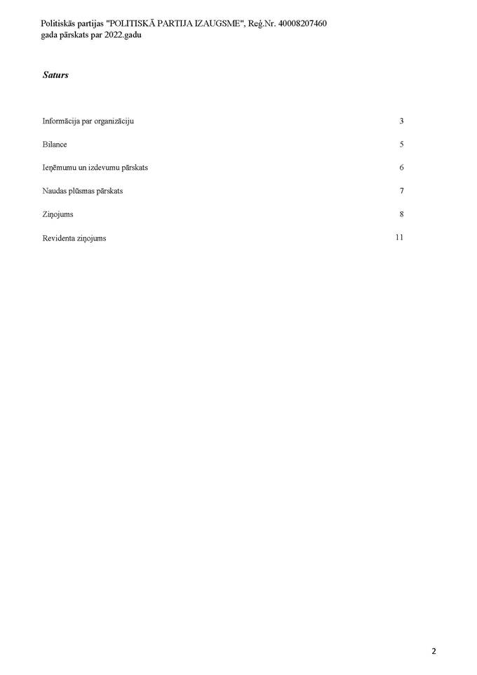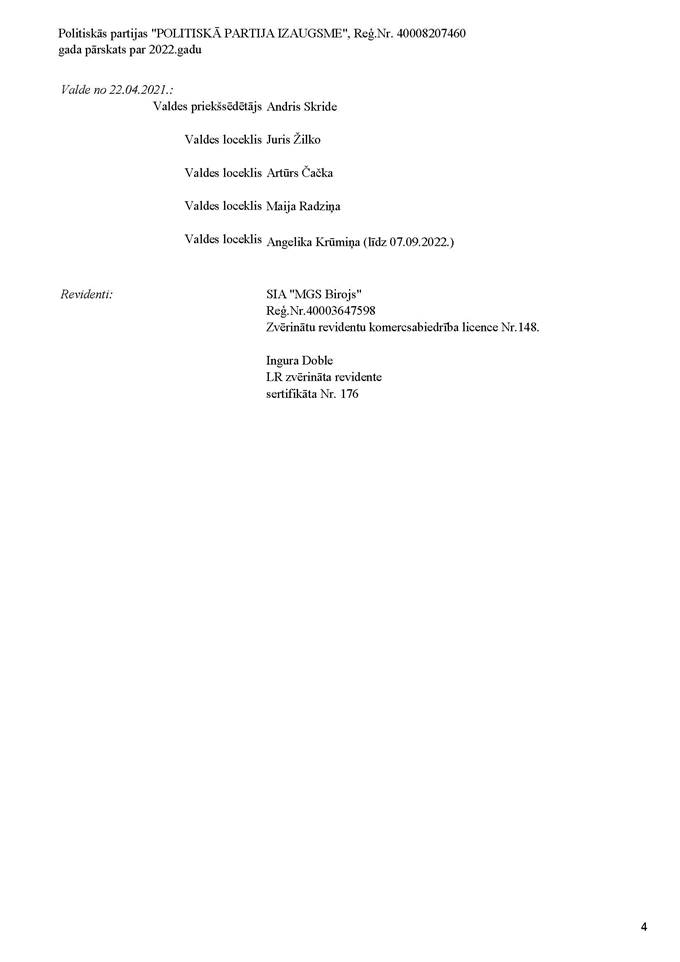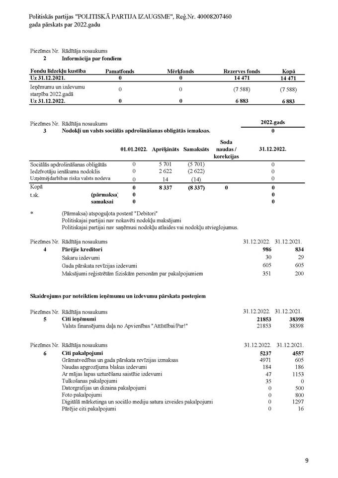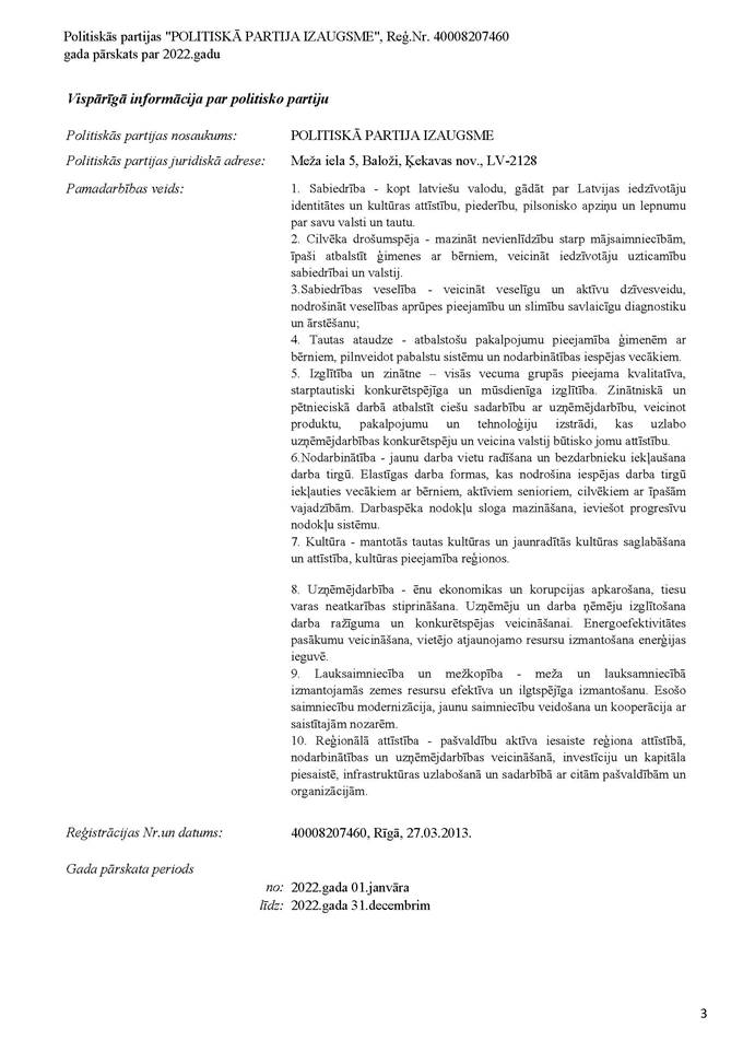 Politiskās partijas "IZAUGSME", reģ. Nr. 40008207460, 2022.gada pārskats