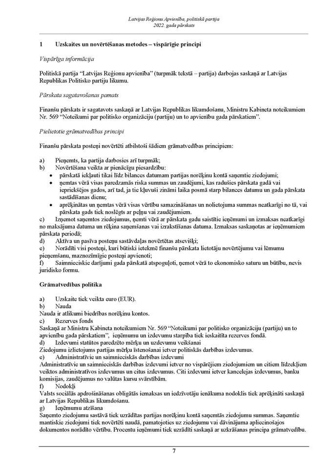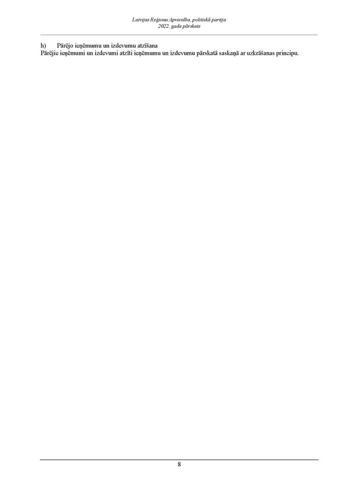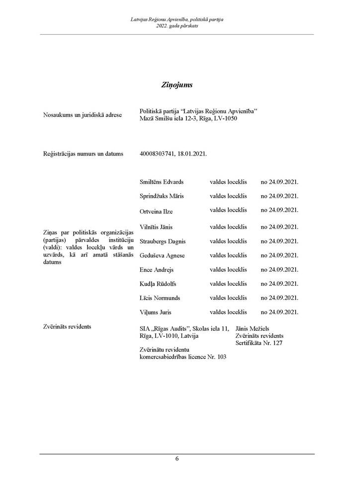 Politiskās partijas "Latvijas Reģionu Apvienība", reģ. Nr.40008303741, 2022.gada pārskats