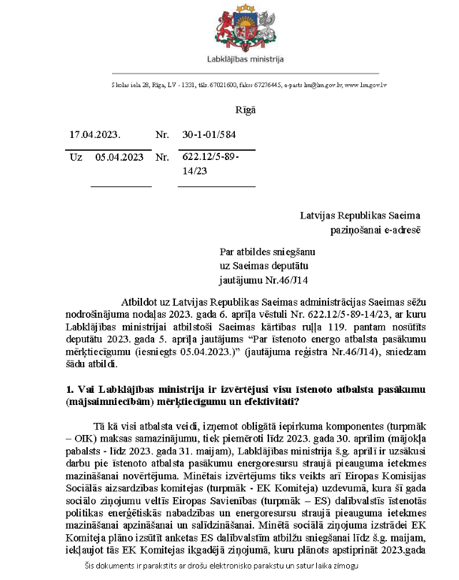 Taču man jūs jāinformē par saņemtajiem deputātu jautājumiem.