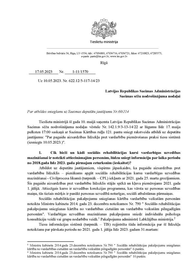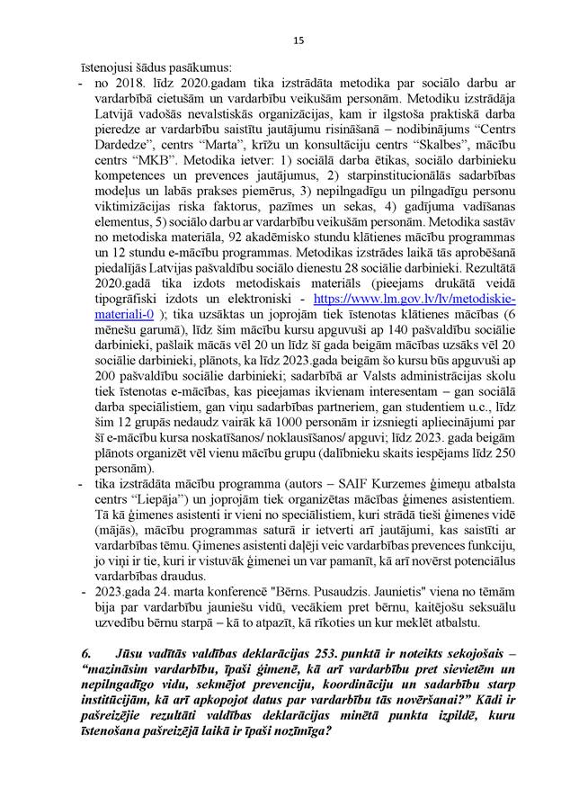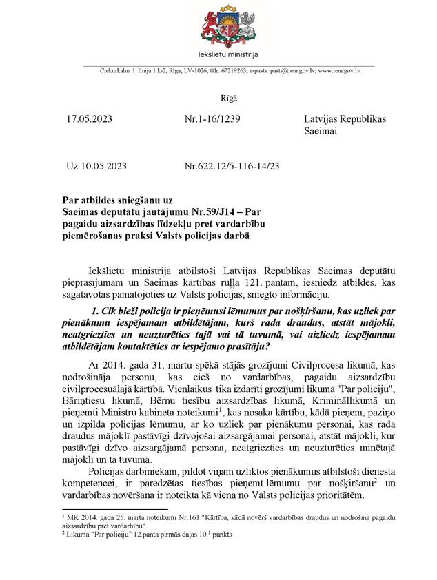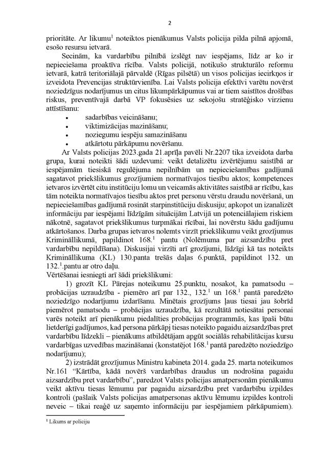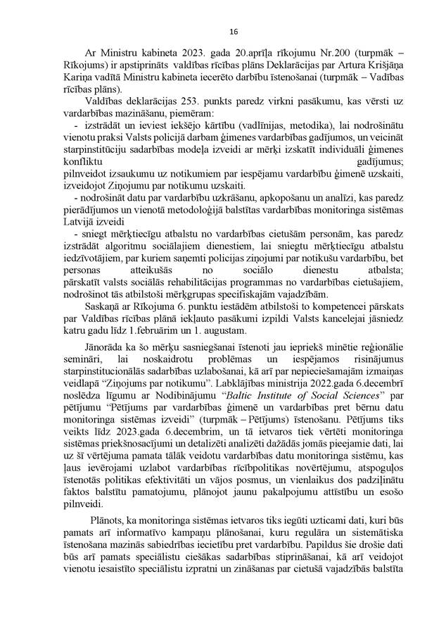 Godātais Saeimas priekšsēdētāj! Godātie kolēģi! Ņemot vērā izskanējušos aicinājumus maksimāli vērsties pret jebkura veida vardarbību pret sievietēm un ņemot vērā pēdējos dramatiskos gadījumus, kas ir izskanējuši mūsu valstī, mēs, APVIENOTAIS SARAKSTS, aicinām nekavējoties risināt jautājumu, ka valstī pieaugošās vardarbības tendences apdraud no Latvijas Republikas Satversmes un starptautiskā cilvēktiesību pamatdokumenta – ANO Vispārējās cilvēktiesību deklarācijas – izrietošo visu Latvijas cilvēku cilvēktiesību aizsardzību pret vardarbības izpausmēm, un, pamatojoties uz Saeimas kārtības ruļļa 117. panta pirmās daļas 1. punktu, iesniedzam Saeimas lēmuma projektu "Par uzdevumu Ministru kabinetam izvērtēt, izstrādāt un virzīt Saeimai izskatīšanai likumprojektus, lai novērstu, izmeklētu vardarbības aktus pret sievieti un ikvienu personu" un lūdzam to ietvert Saeimas kārtējās sēdes –2023. gada 18. maija sēdes – darba kārtībā.