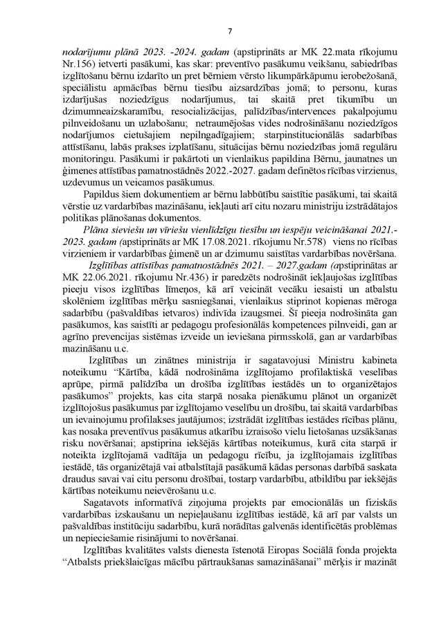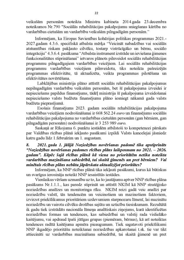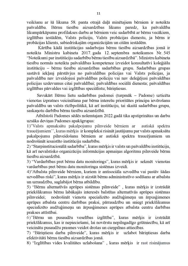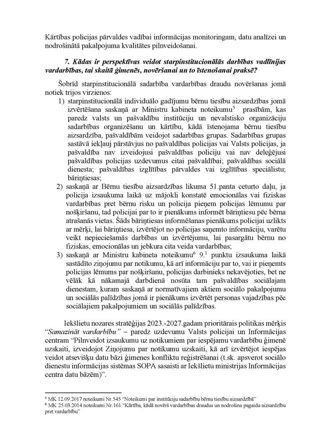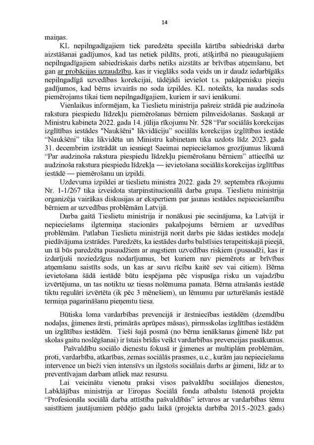 Visbeidzot – ir svarīgi, lai mēs kā sabiedrība kopumā nebūtu vienaldzīgi pret mūsu bērniem un meklētu veidus, kā tiem palīdzēt. Tāpēc liels paldies tām nevalstiskajām organizācijām, kas aktīvi iesaistās bērnu un ģimeņu problēmu risināšanā un arī atbalstīja Valsts kontroles darbu šajā revīzijā.