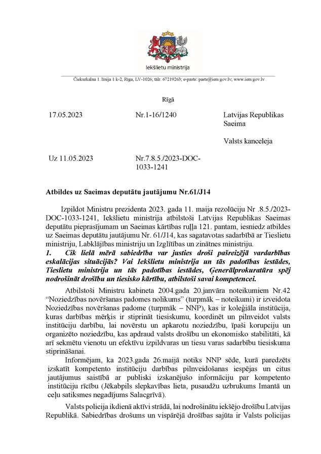 Kolēģi, mēs esam izskatījuši visu Saeimas 2023. gada 18. maija sēdes darba kārtību.