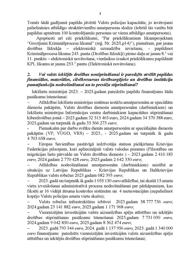 Lai no Eiropas Komisijas tiktu saņemts ikgadējais maksājums 438 miljonu eiro apjomā, Latvijai līdz šī gada beigām ir jāiesniedz Eiropas Komisijai audits... pieprasījums... par visu 2022. gada rādītāju izpildi ar pamatojošiem dokumentiem, tādējādi visiem risinājumiem ir jābūt izpildītiem ne vēlāk kā līdz šī gada 30. jūnijam. Nepieņemot šo likumu, pastāv risks, ka Latvija var nesaņemt daļu no finansējuma, kas varētu būt 20 miljonu eiro apjomā.