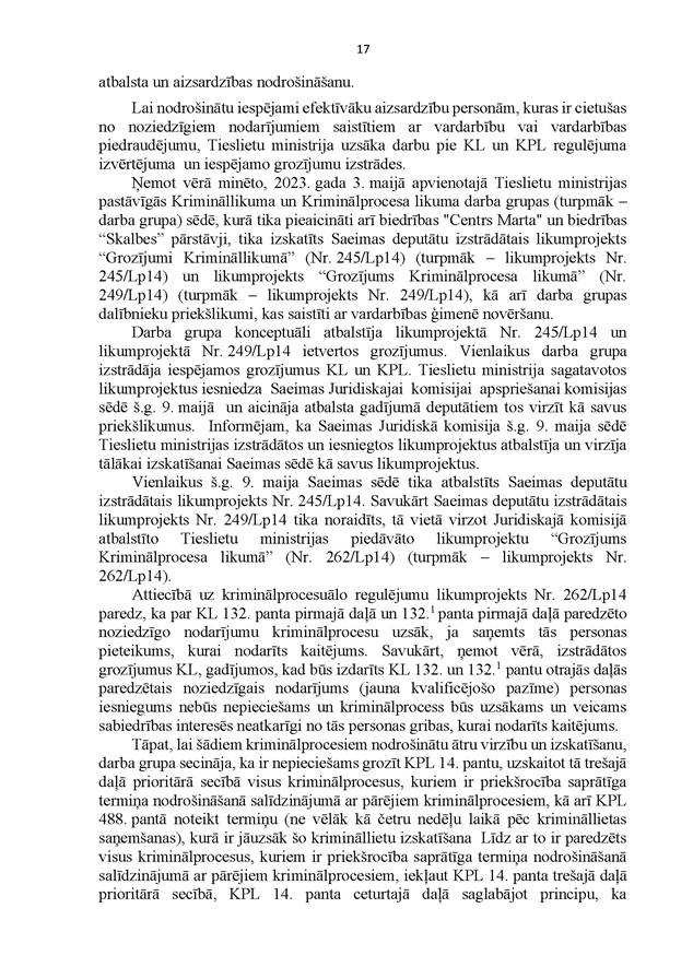 Komisija izšķīrās par labu pirmajam risinājumam – ar nosacījumu, ka tās normas, par kurām bija diskusijas un strīdi un iebildumi no mūsu sociālajiem partneriem, iebildumi no organizācijām, otrajā lasījumā mēs izslēdzam no likumprojekta un atstājam tikai to, par ko ir vienošanās ar visām nevalstiskajām organizācijām un ar iestādēm.