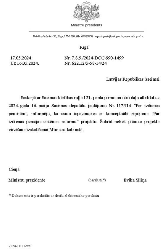 Līdz ar to atbilžu sniegšana uz deputātu jautājumiem 2024. gada 20. jūnijā nenotiks.