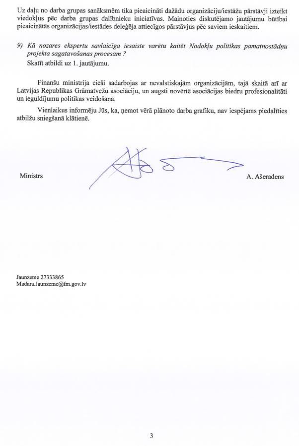 Deputātu Ramonas Petravičas, Mārča Jencīša, Ričarda Šlesera, Kristapa Krištopana un Lindas Liepiņas jautājums finanšu ministram Arvilam Ašeradenam "Par Nodokļu politikas pamatnostādņu izstrādes procesu". Saņemtā rakstveida atbilde iesniedzējus neapmierina, bet mutvārdos papildjautājumus uzdot nevēlas.