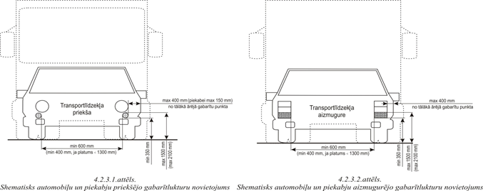 2) reģistrācijas numura zīmes apakšējā mala nedrīkst atrasties zemāk par 0,2 m no ceļa virsmas, bet augšējā mala – augstāk par 1,5 m no ceļa virsmas. Ja pēdējais nosacījums transportlīdzekļa konstrukcijas dēļ nav izpildāms, valsts reģistrācijas numura zīmi novieto iespējami tuvāk minētajam augstumam. Reģistrācijas numura zīmes augstumu virs ceļa virsmas mēra nenoslogotam transportlīdzeklim.