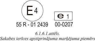 A1. Transportlīdzeklim jābūt aprīkotam ar tiesību aktos noteiktajām un ar to saistītajām valsts reģistrācijas numura zīmēm. Valsts reģistrācijas numura zīmes tipam un novietojumam jāatbilst normatīvajos aktos par transportlīdzekļu reģistrāciju noteiktajām prasībām. Valsts reģistrācijas numura zīmei jābūt pienācīgi nostiprinātai izgatavotāja paredzētajā vietā.