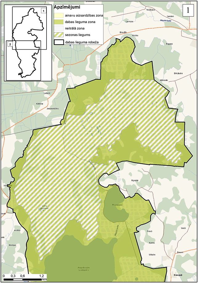 24. Sezonas lieguma teritorijā no 1. februāra līdz 15. jūlijam aizliegts uzturēties cilvēku grupām (vairāk par 10 cilvēkiem), izņemot gadījumus, ja uzturēšanās saistīta ar šīs teritorijas apsaimniekošanu (tai skaitā medībām), uzraudzību, valsts aizsardzības uzdevumu īstenošanu, kā arī ar Dabas aizsardzības pārvaldes rakstisku atļauju monitoringa un zinātnisko pētījumu veikšanai. Atļauja uzturēties cilvēku grupām (līdz 10 cilvēkiem) neattiecas uz organizētiem publiskiem pasākumiem.