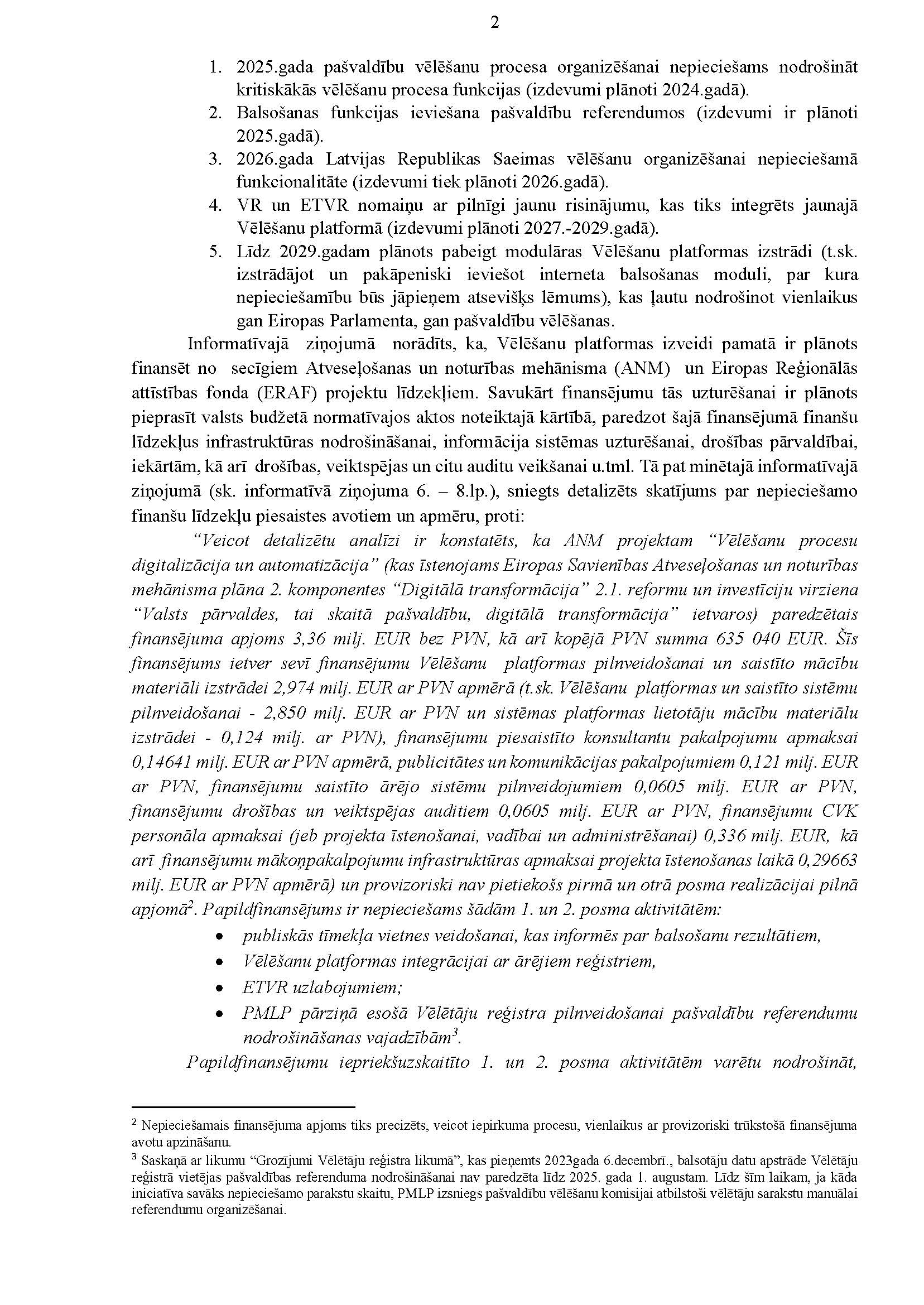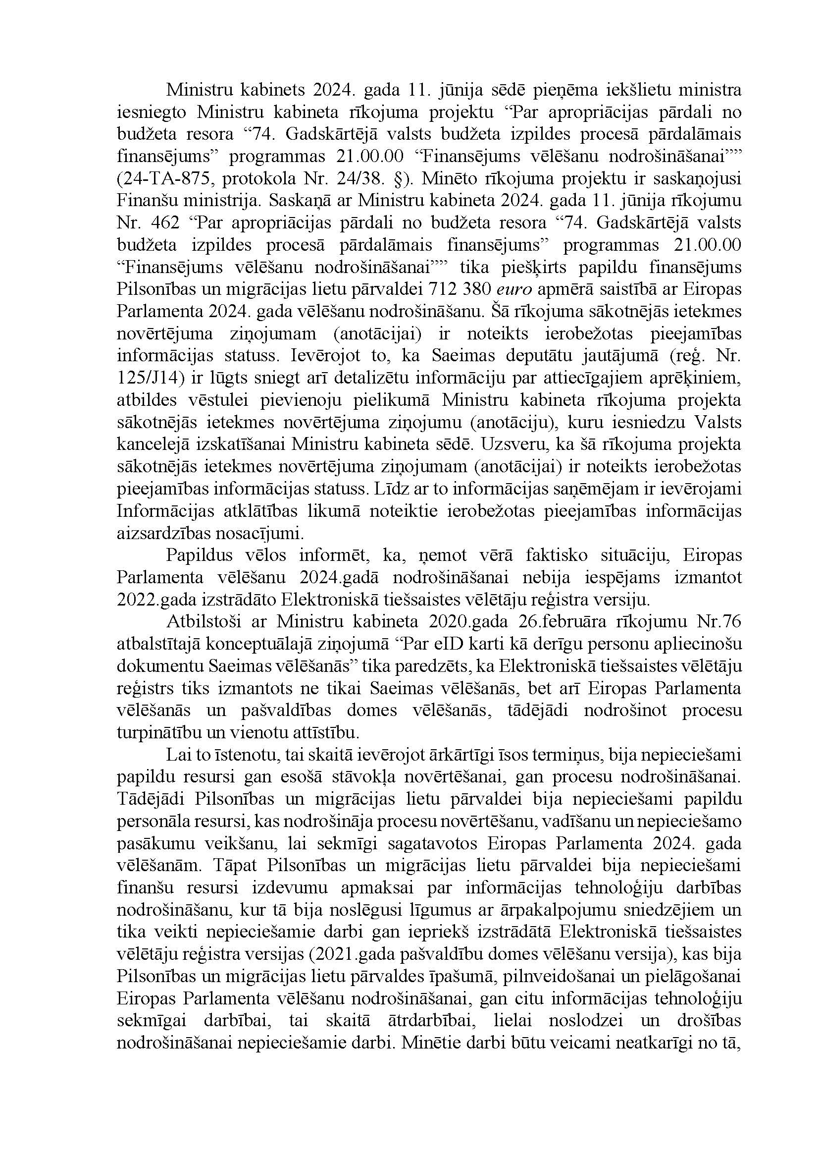 Augsti godātā Saeimas priekšsēdētājas kundze! Godātie kolēģi! Budžeta un finanšu (nodokļu) komisija diskusijās, vērtējot budžeta pieņemšanas gaitu, ir konstatējusi, ka daudzas valsts pārvaldes institūcijas, iestādes, solidarizējoties, lai izpildītu galveno valsts prioritāti – drošību –, vai nu ir ierobežojušas savus izdevumus, meklē līdzekļus izdevumu ierobežošanai... ir arī gatavoti priekšlikumi valsts iestādēm un pašvaldību iestādēm... ieteikumi algu pieaugumu palielināt ne vairāk kā par 2,6 procentiem 6 procentu vietā. Pārrunājot Budžeta un finanšu (nodokļu) komisijā, mēs nolēmām, ka arī politiskajām partijām, kuras saņem finansējumu no valsts budžeta, ir nepieciešams solidarizēties. Šo situāciju pārrunājām arī ar frakciju vadītājiem, un komisijā tapa likumprojekts, kas paredz, ka 2025. gadā finansējums politiskajām partijām nepieaugs. Mēs izskatījām, atbalstījām steidzamību un atbalstījām likumprojektu arī pirmajā lasījumā.