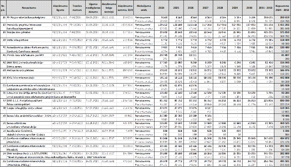 Saskaņā ar aizņēmumu līgumiem ar Valsts kasi un plānotajiem aizņēmumiem, 2024. gadā paredzēts atmaksāt aizņēmumu pamatsummas 3 486 155 euro.