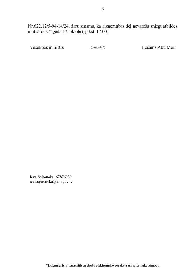 Līdz ar to atbilžu sniegšana uz deputātu jautājumiem 2024. gada 17. oktobrī nenotiks.