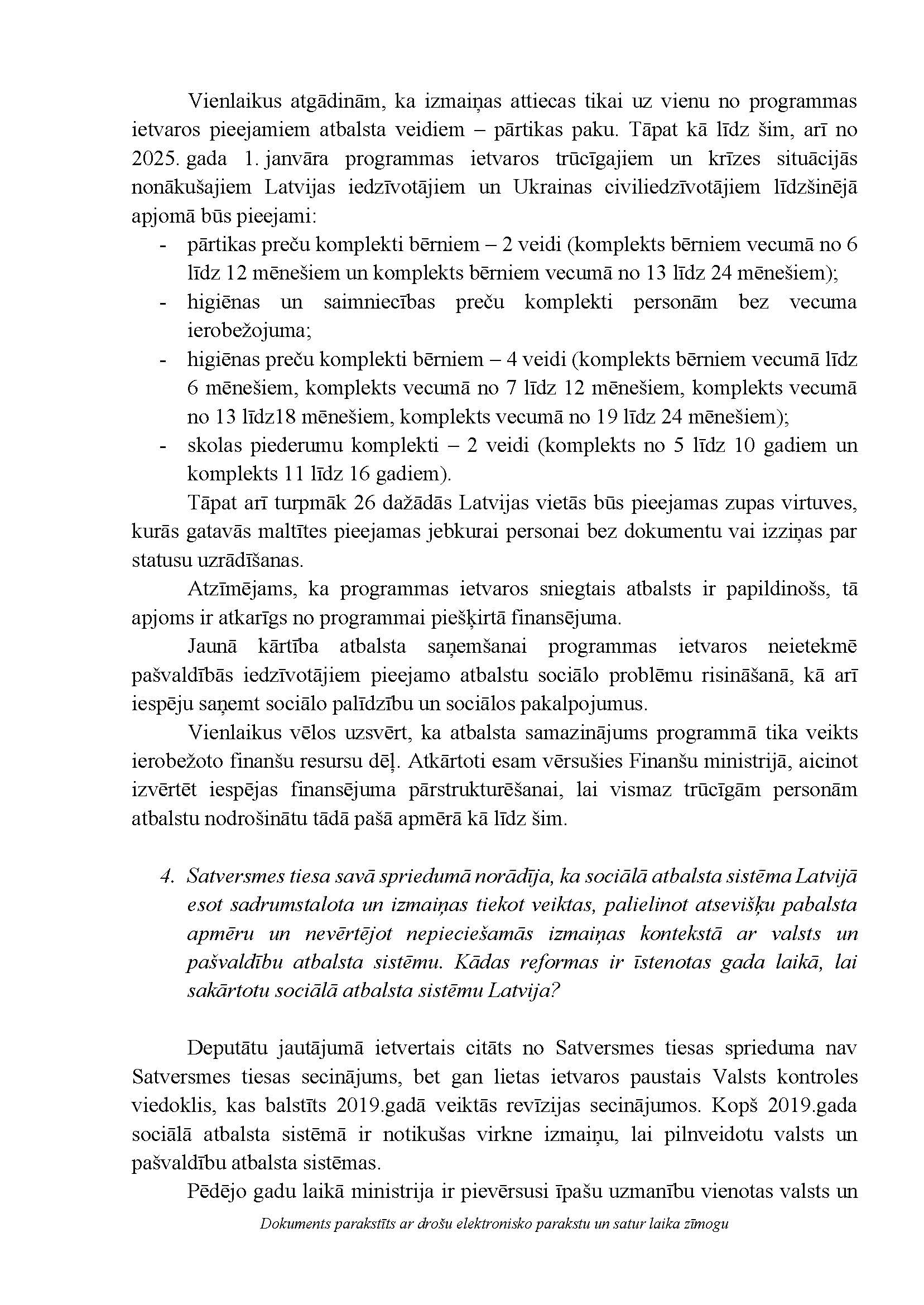 Vēl paliek atbilžu sniegšana uz deputātu jautājumiem 2024. gada 7. novembrī pulksten 17.00.