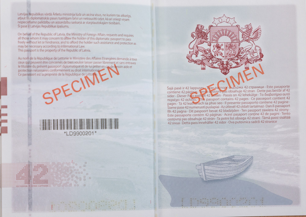 On behalf of the Republic of Latvia, the Ministry of Foreign Affairs requests and requires all those whom it may concern to allow the holder of this diplomatic passport to pass freely without let or hindrance, and to afford the holder such assistance and protection as may be necessary according to International Law.