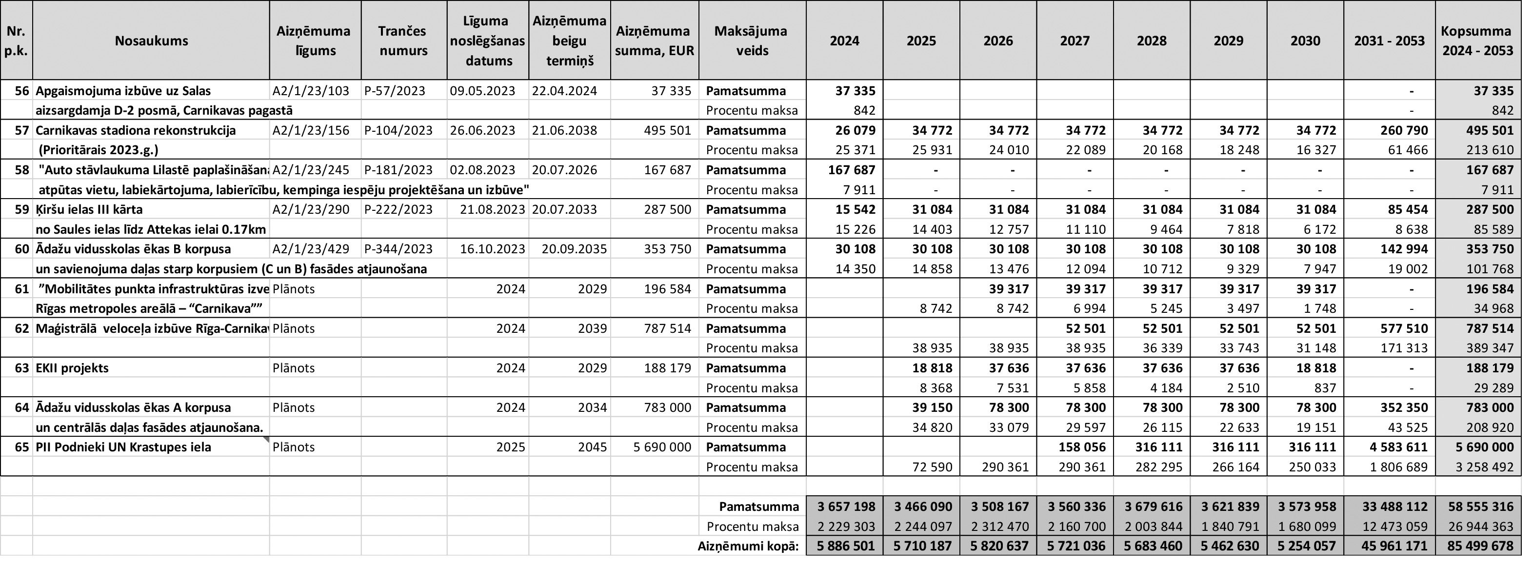 2.3.4. atmaksājamā summa Valsts kases kredītiem (2. pielikums) – 3 657 198 euro."