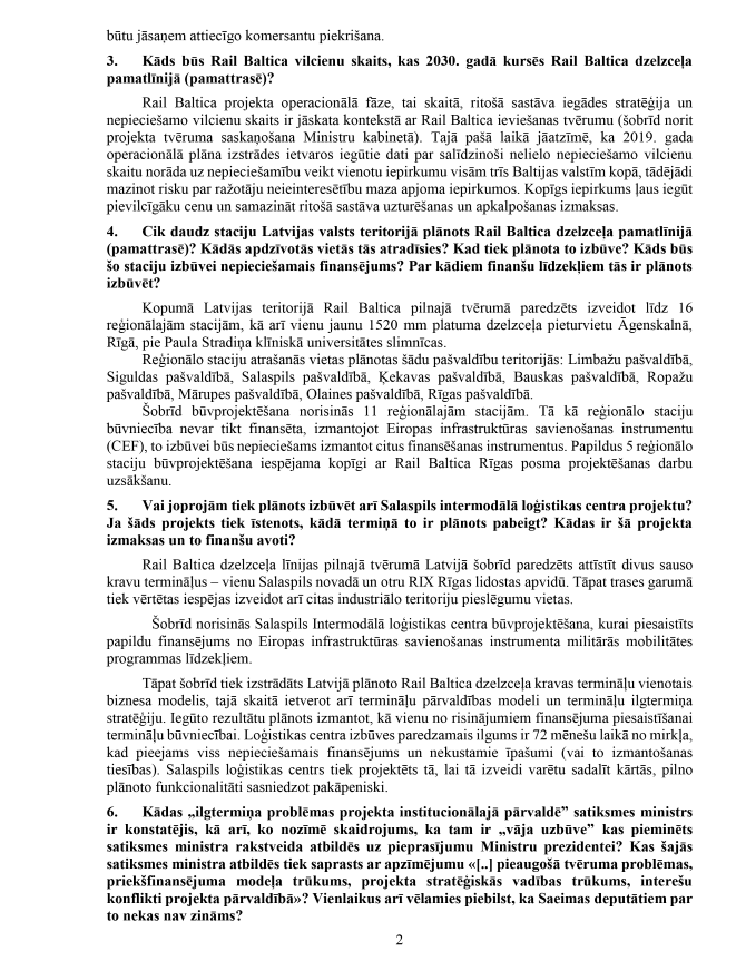 Vēl mums ir viens – atbilžu sniegšana uz deputātu jautājumiem.