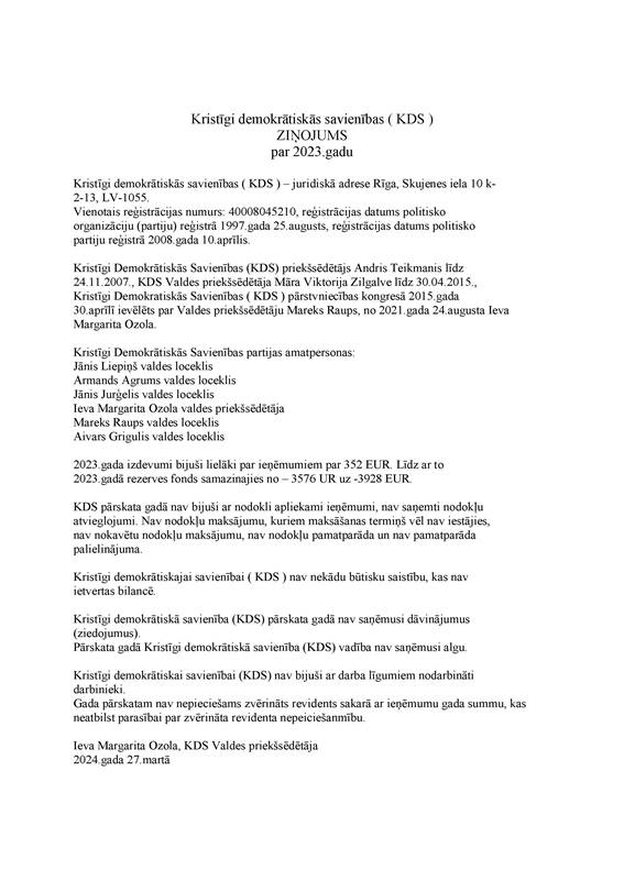 Politiskās partijas "Kristīgi demokrātiskā savienība", reģ. Nr. 40008045210, gada pārskats par 2023. gadu, EUR