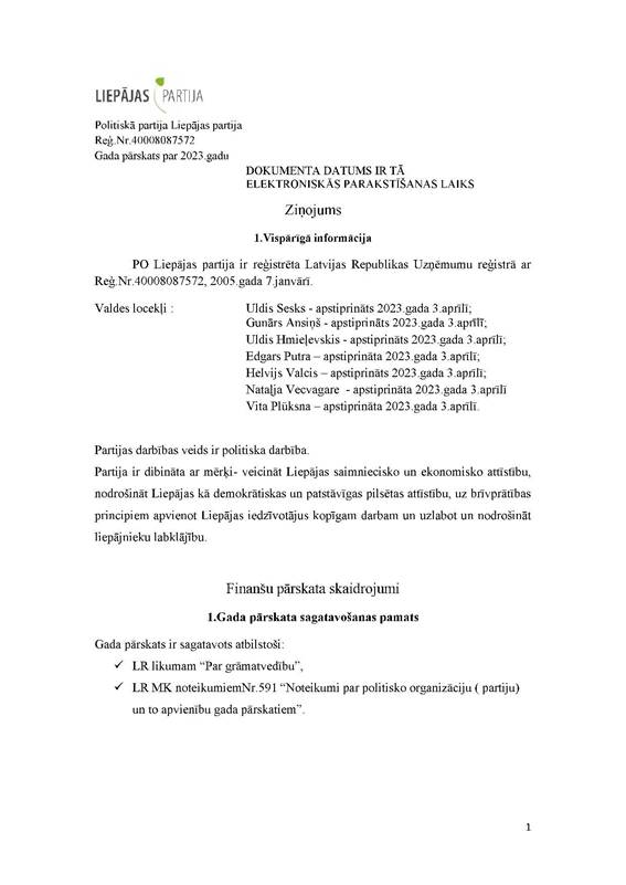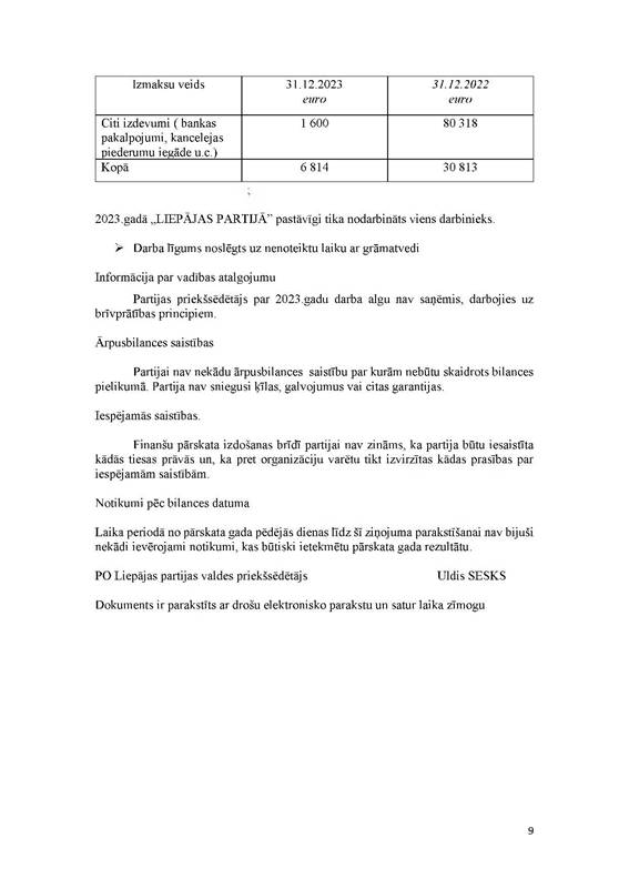 Politiskās partijas "LIEPĀJAS PARTIJA", reģ. Nr. 40008087572, gada pārskats par 2023. gadu, EUR