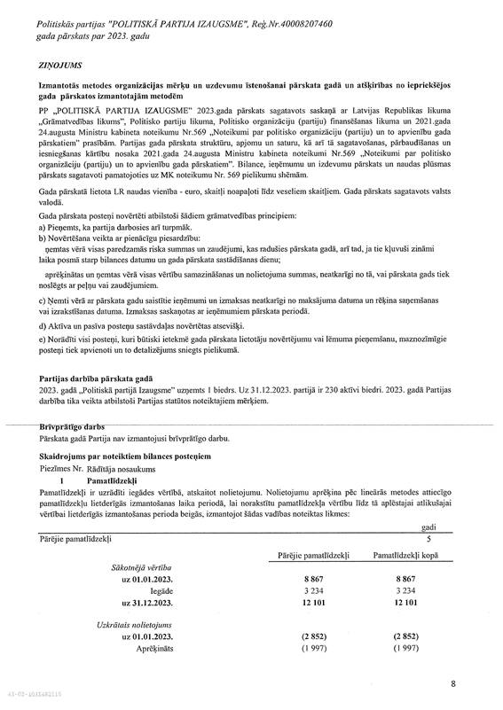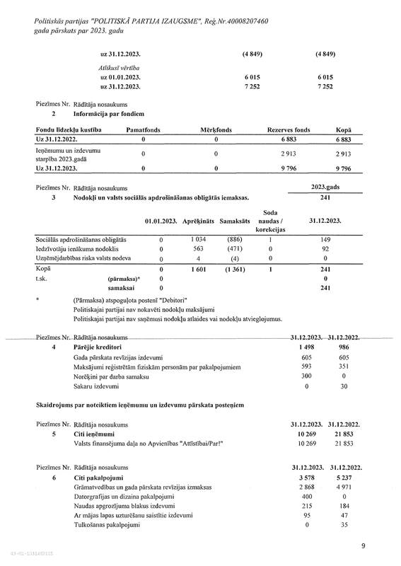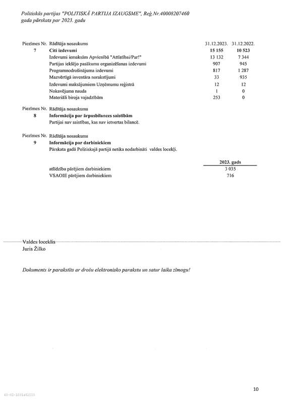 Politiskās partijas "POLITISKĀ PARTIJA IZAUGSME", reģ. Nr. 40008207460, gada pārskats par 2023. gadu, EUR