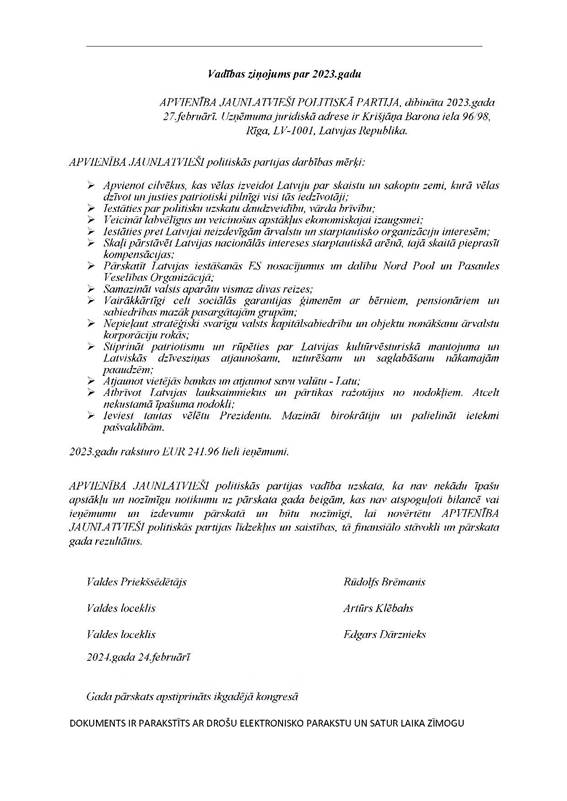 Politiskās partijas "APVIENĪBA JAUNLATVIEŠI", reģ. Nr. 40008322687, gada pārskats par 2023. gadu, EUR